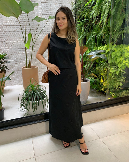Conjunto Cropped e Saia De Linho Bordado 90373