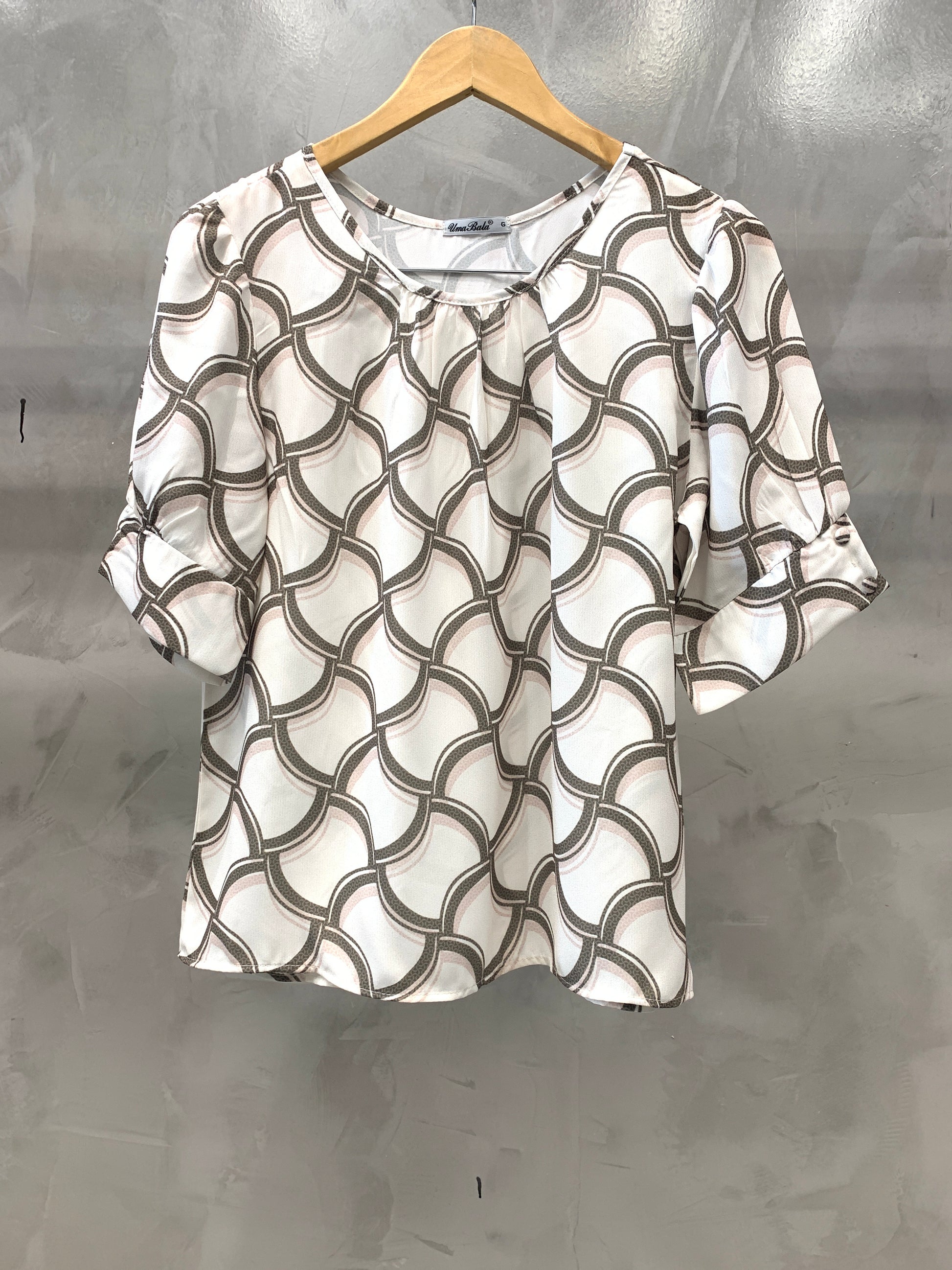 Blusa Manga Bufante com Decote Redondo Franzido e Botões Forrados.
