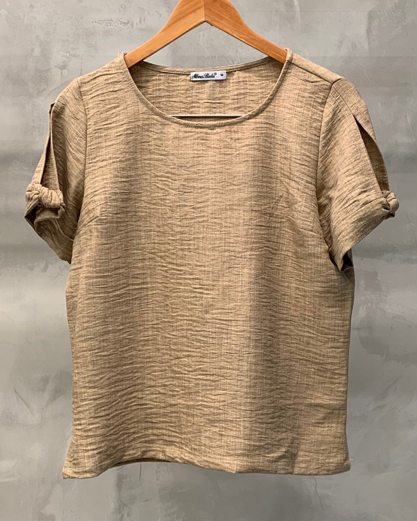 Blusa com detalhe de nó na manga. Composição: 100% Poliéster