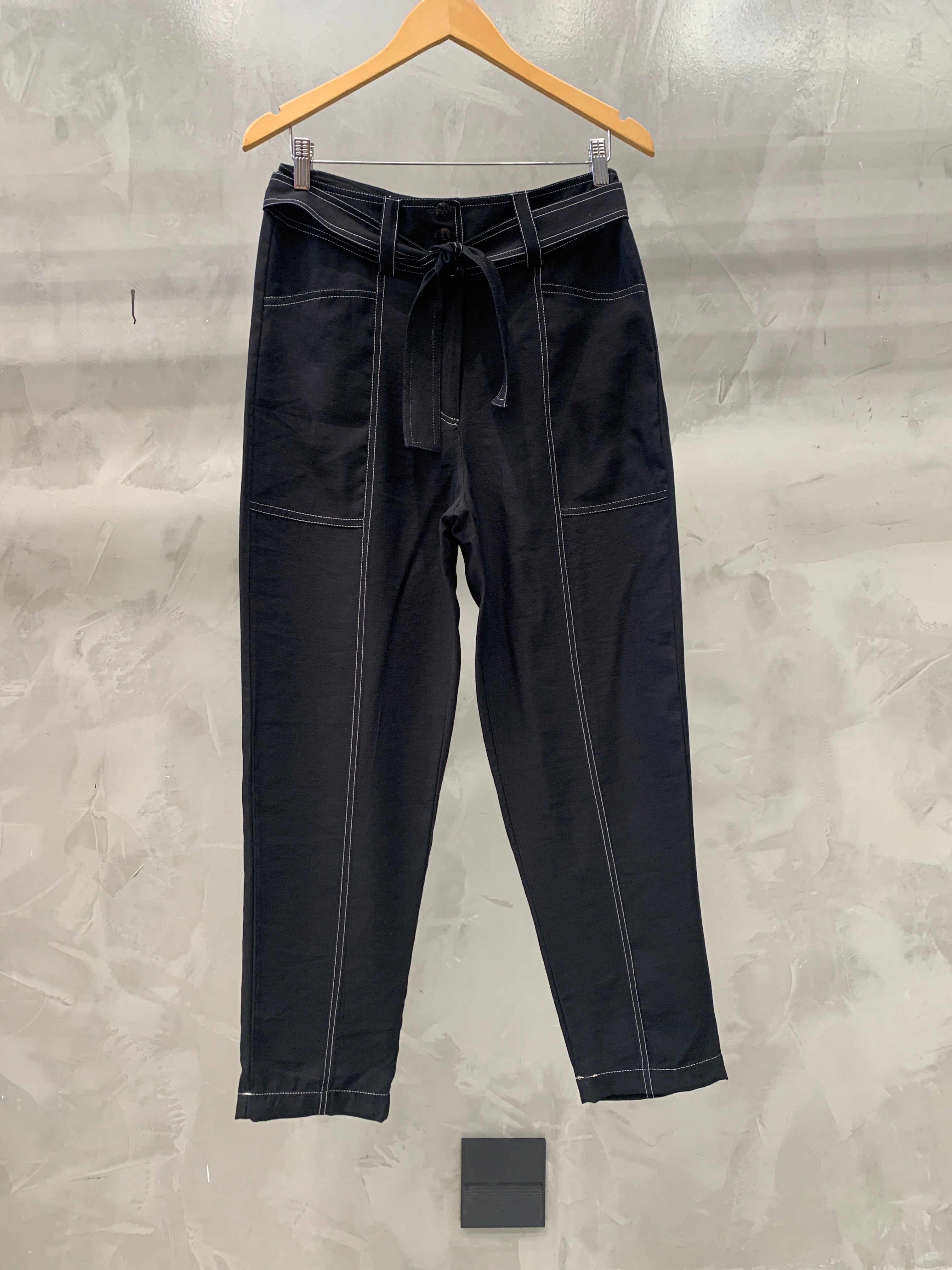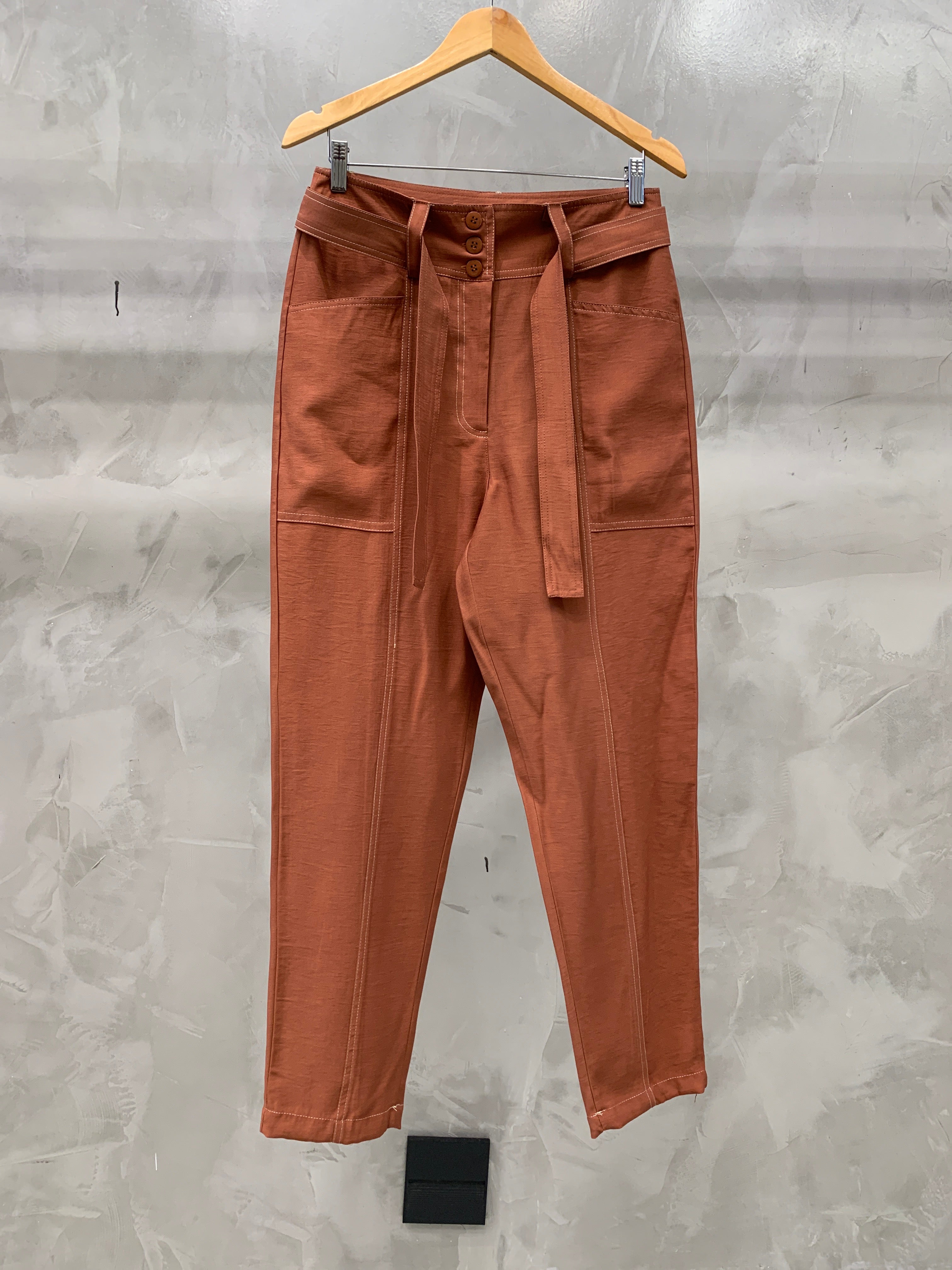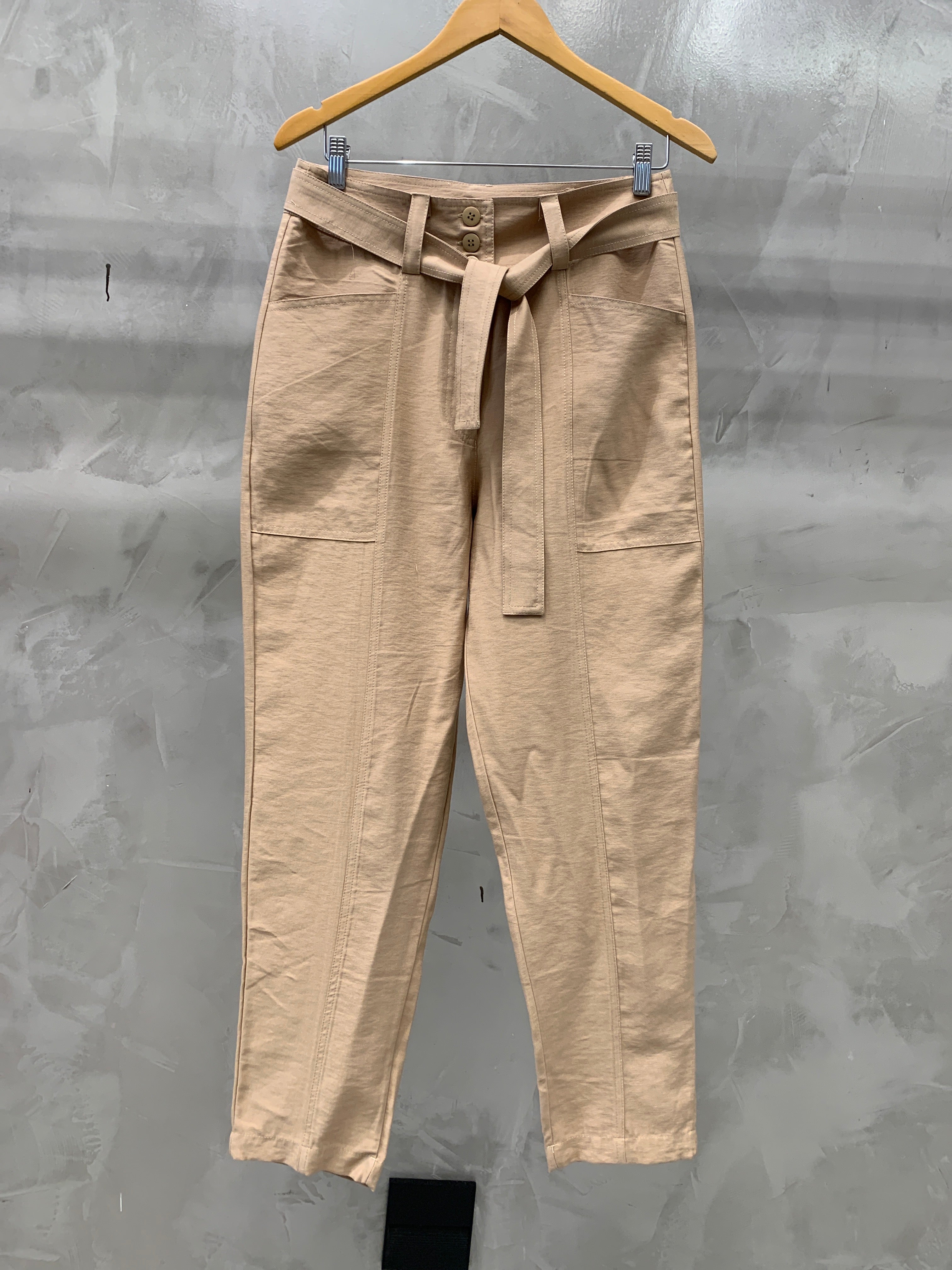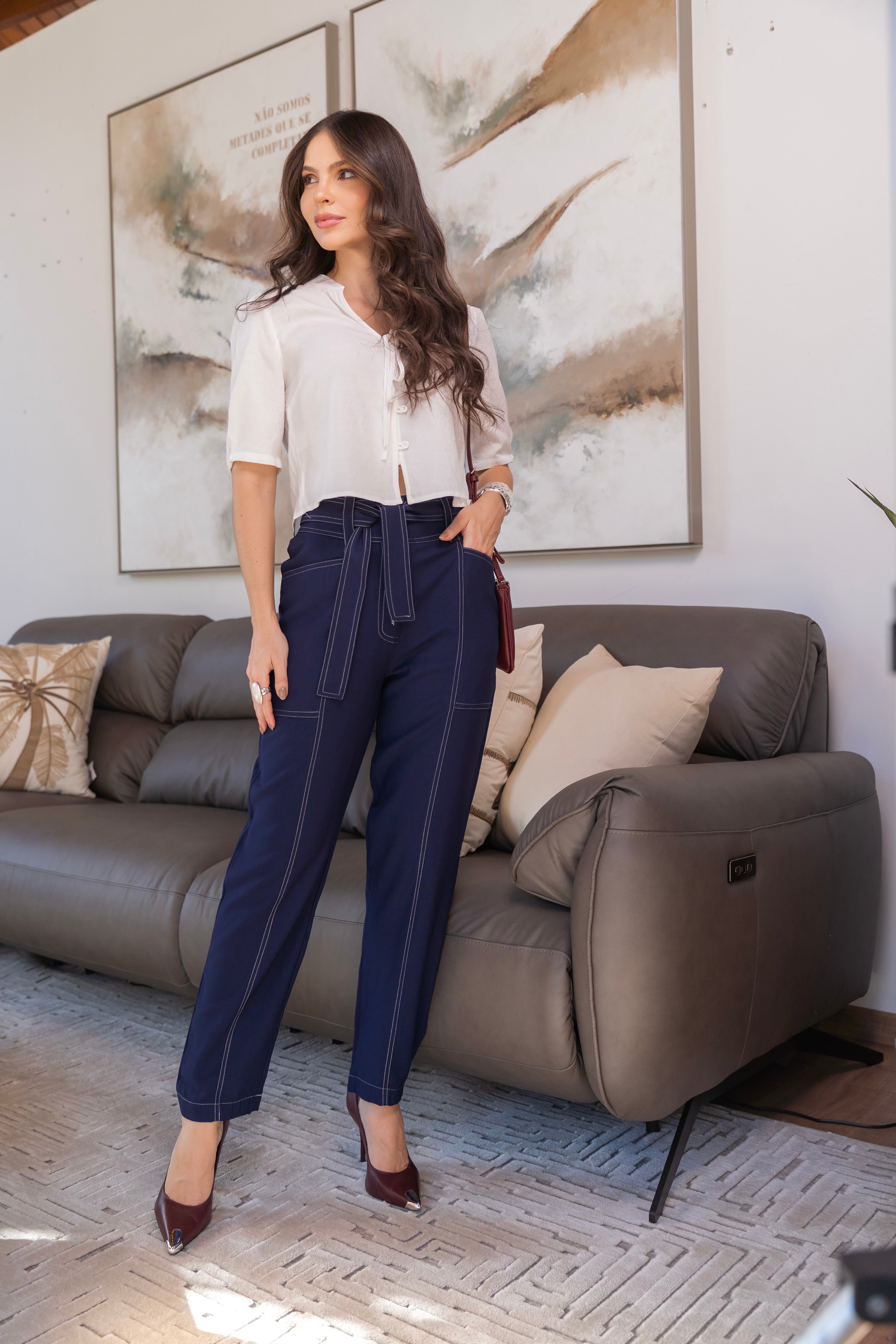 Calca cenoura com pespontos em contraste que dão o diferencial na peça, acompanha cinto de amarração do mesmo tecido e bolsos laterais. É a peça perfeita para compor com looks elegantes e sofisticados. Confeccionado no tecido Marante.