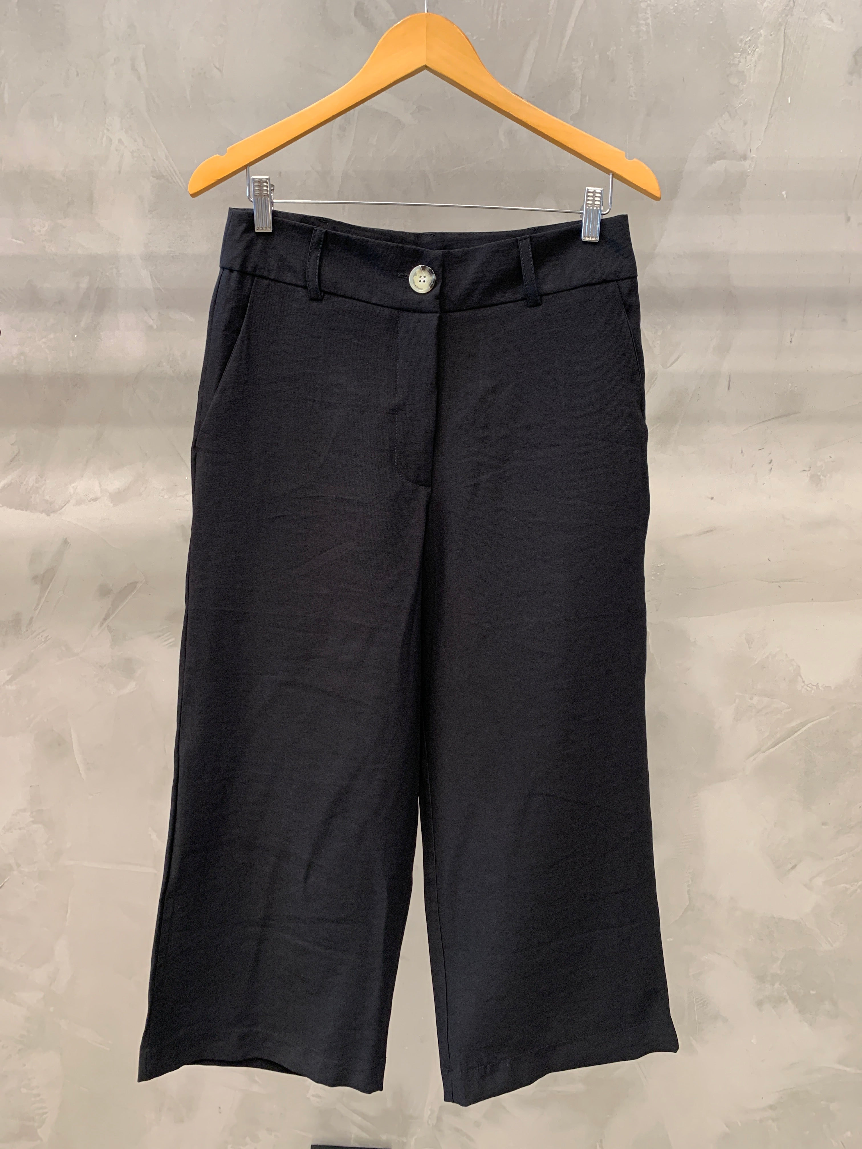 Calça pantacourt com detalhe de bolsos frontais e traseiros, que dão um ar mais casual e moderno a peça. É confeccionado no tecido Marante, um tecido super leve e confortável!