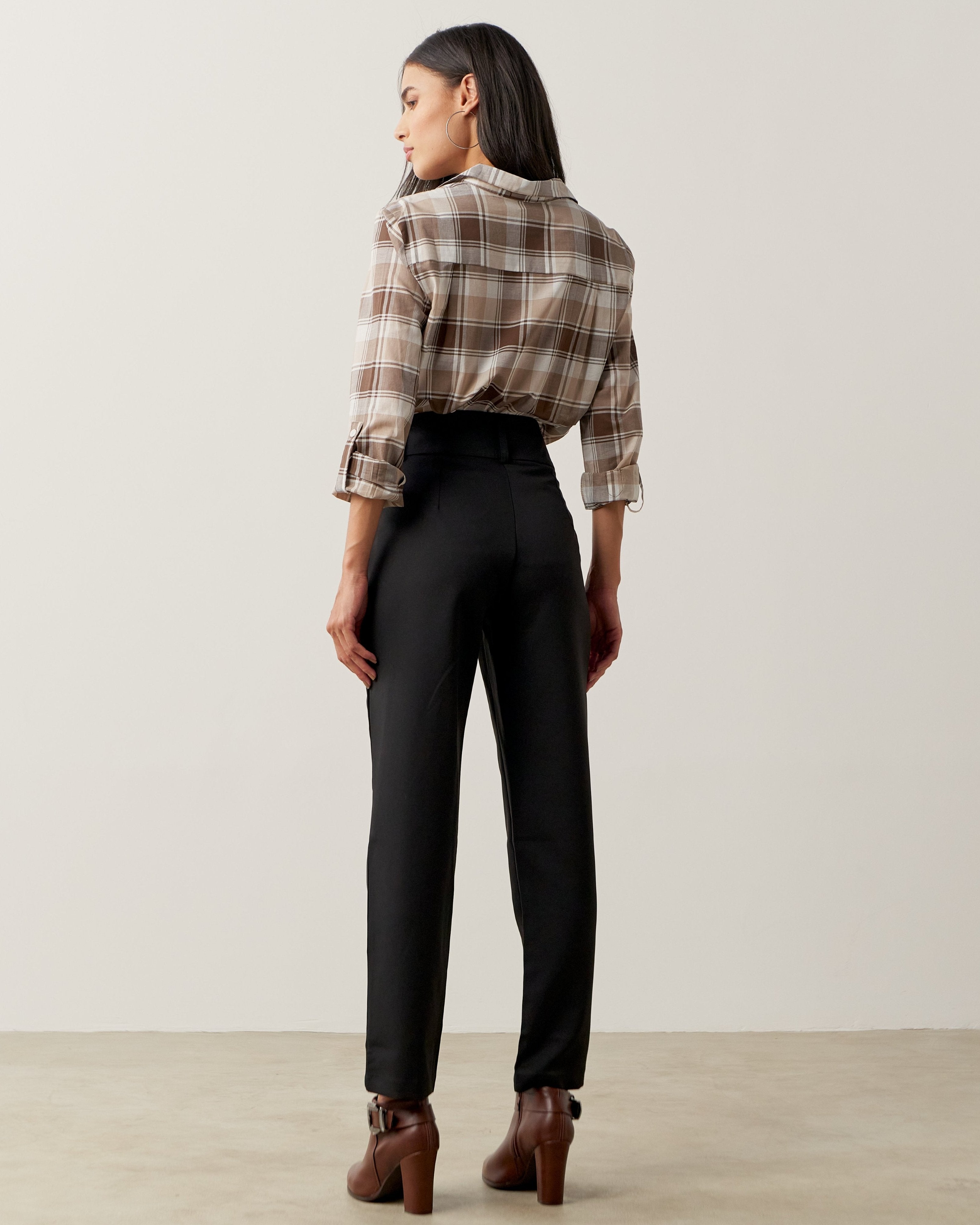 Calça De Alfaiataria Com Detalhes de Pregas Na Frente.