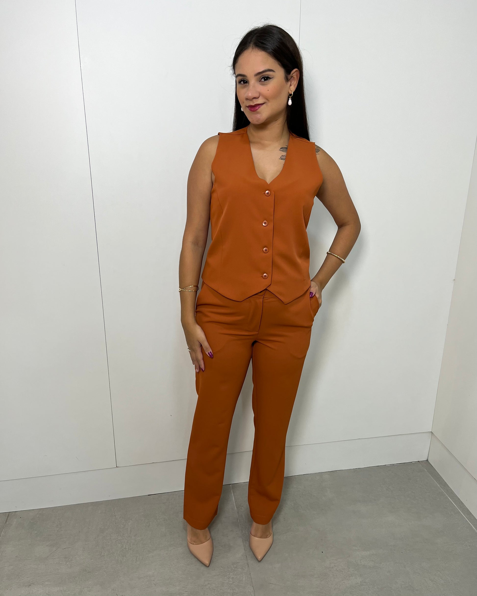 Calça lisa com modelagem reta, tem detalhes de botão frontal, bolsos laterais e traseiro. É aquela peça básica que vai com tudo. Confeccionado no tecido New Twoway.