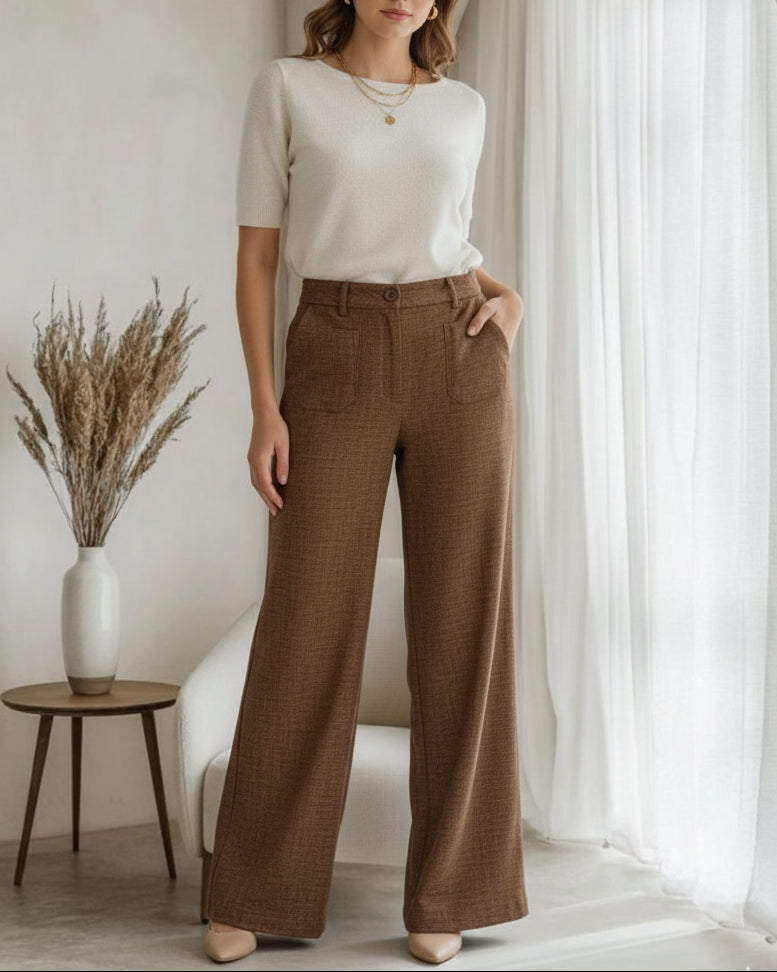 Calça reta de cintura alta com detalhes de bolsos frontais e botão da mesma cor. É uma peça chave para ter no guarda roupa, com ela você vai de looks casuais até looks mais elegantes ! Confeccionado no tecido de Polylinho.