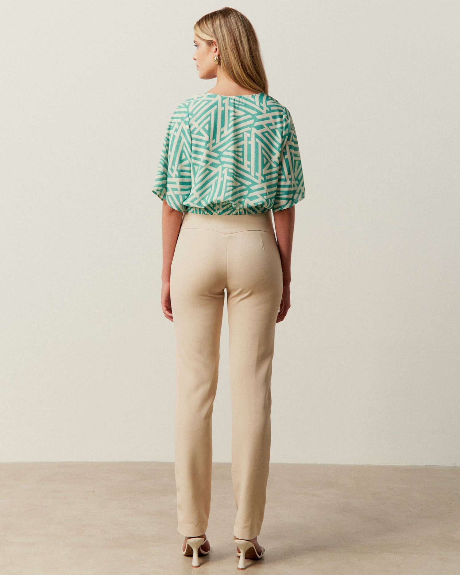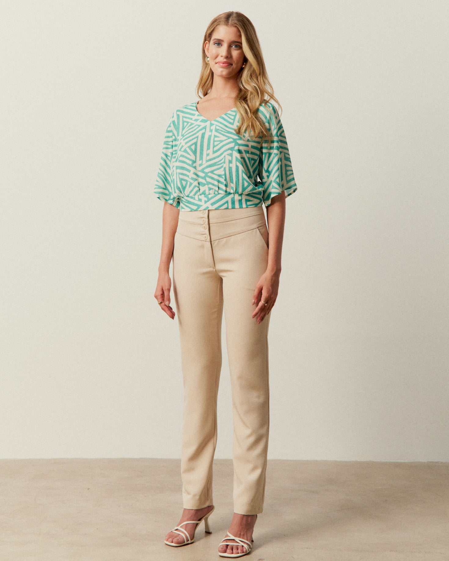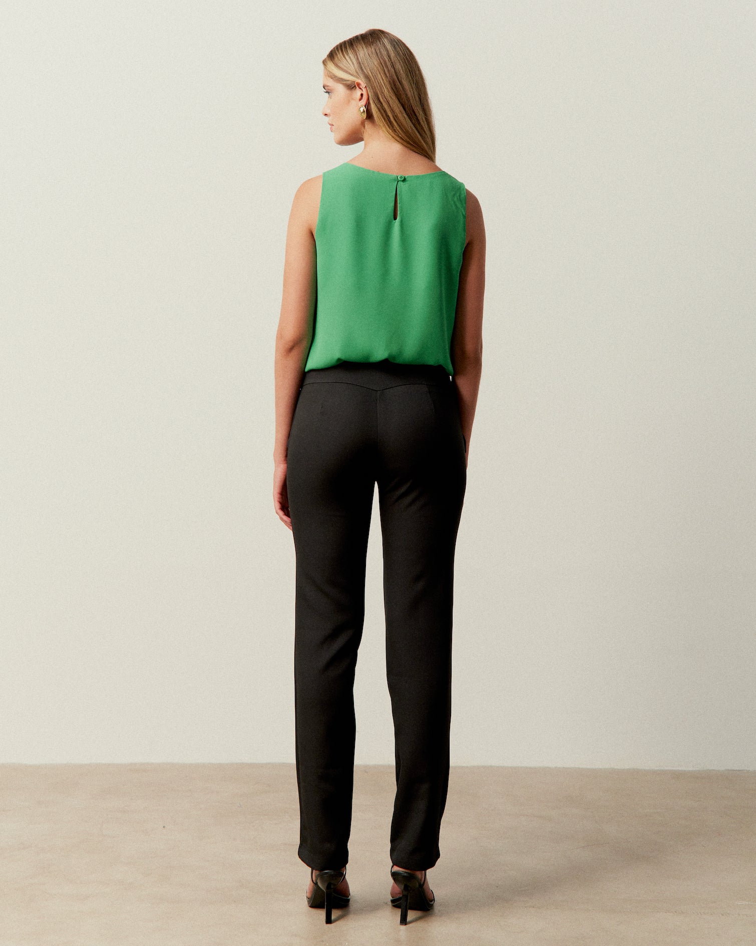 Calça de alfaiataria com detalhes de recortes e botões no cós | Composição: 95% Poliéster 05% Elastano