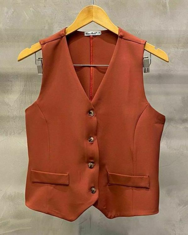 Colete com decote em V, a peça versátil que completa qualquer visual. O decote em V que alonga a silhueta, oferecendo elegância e conforto.