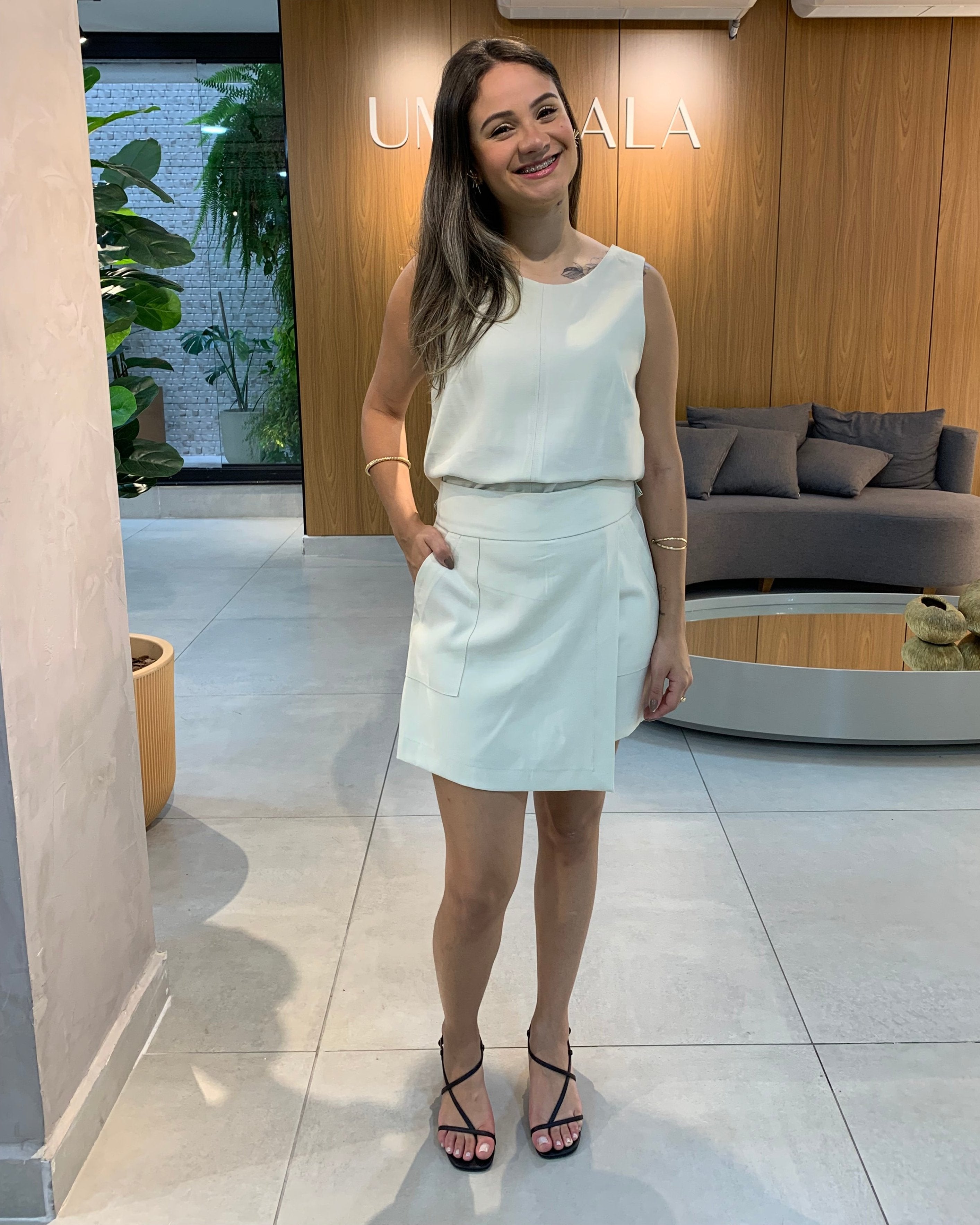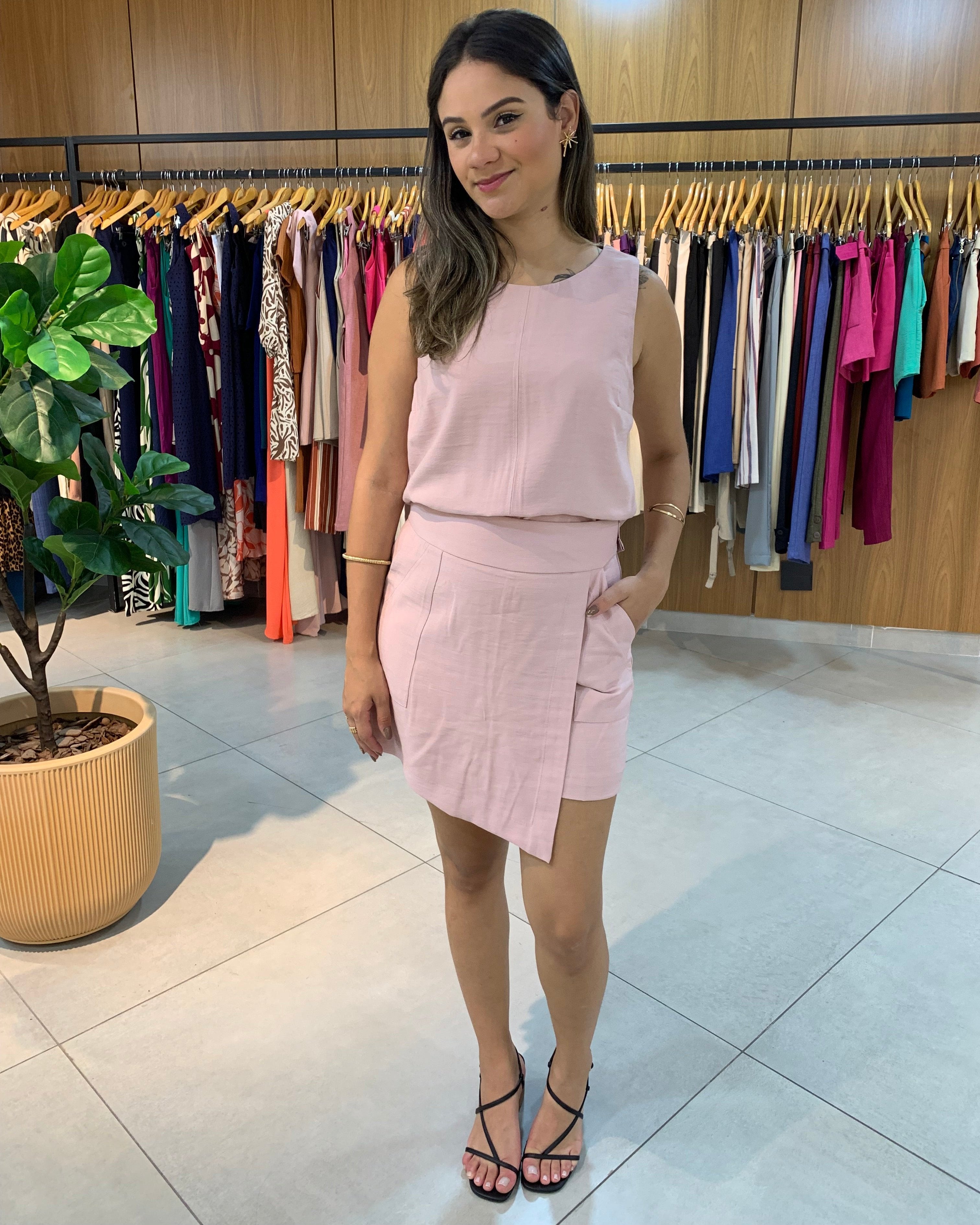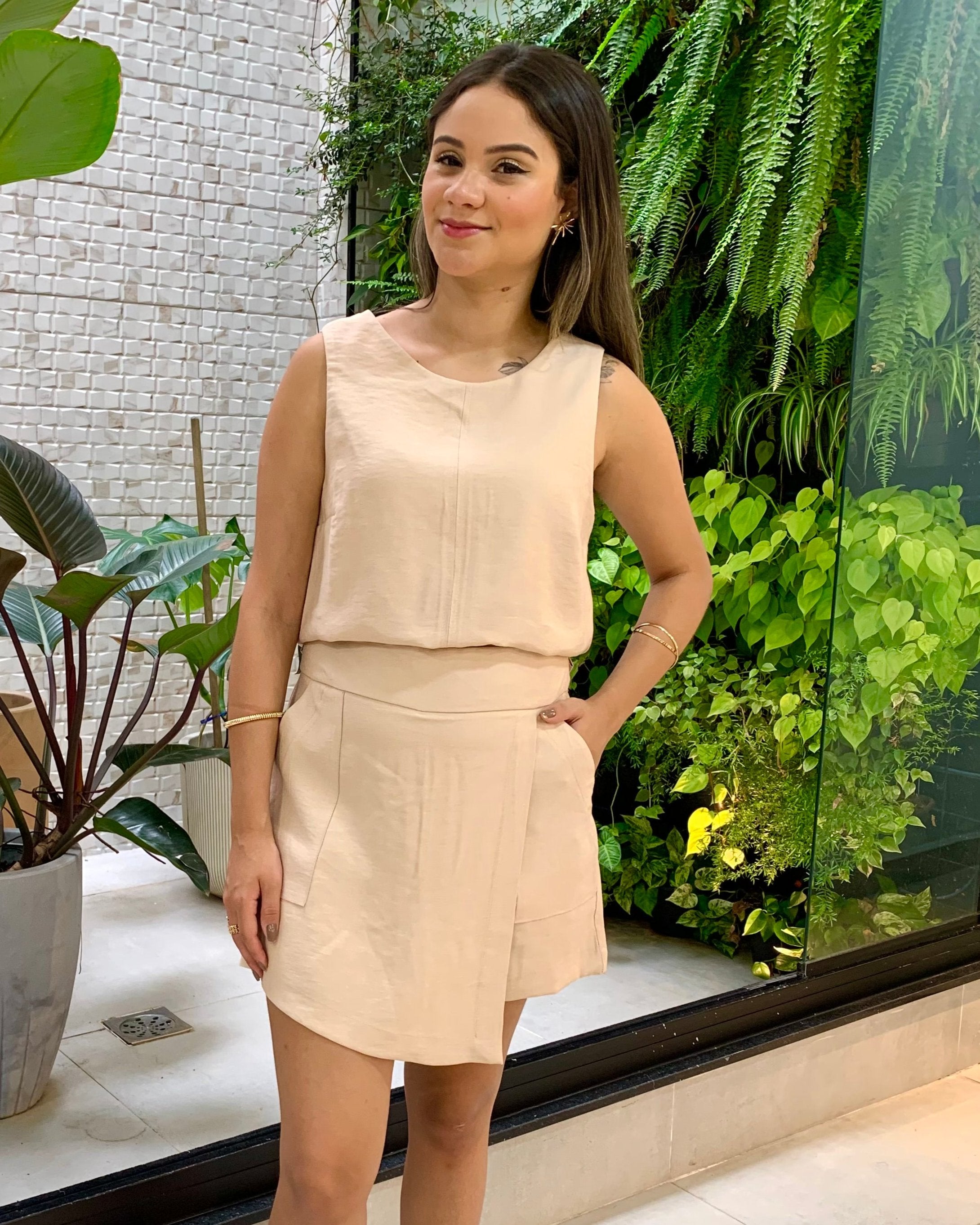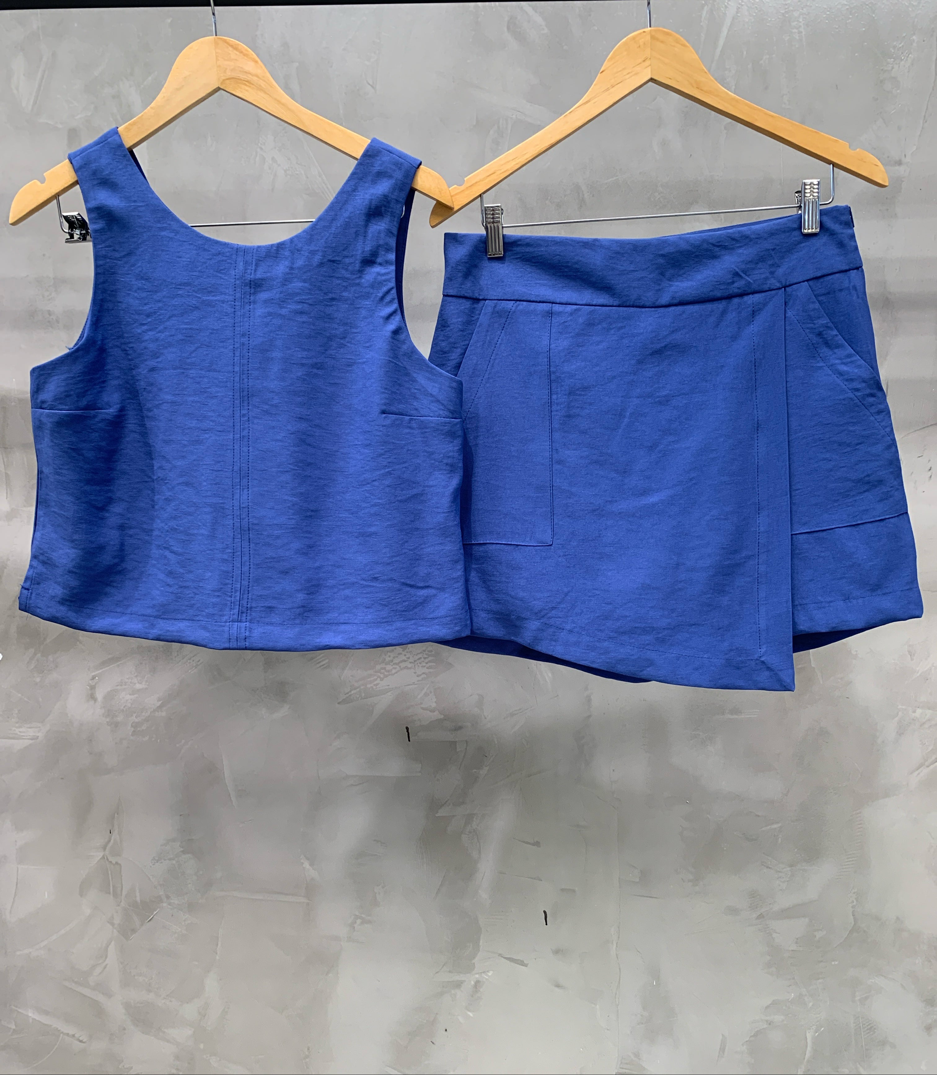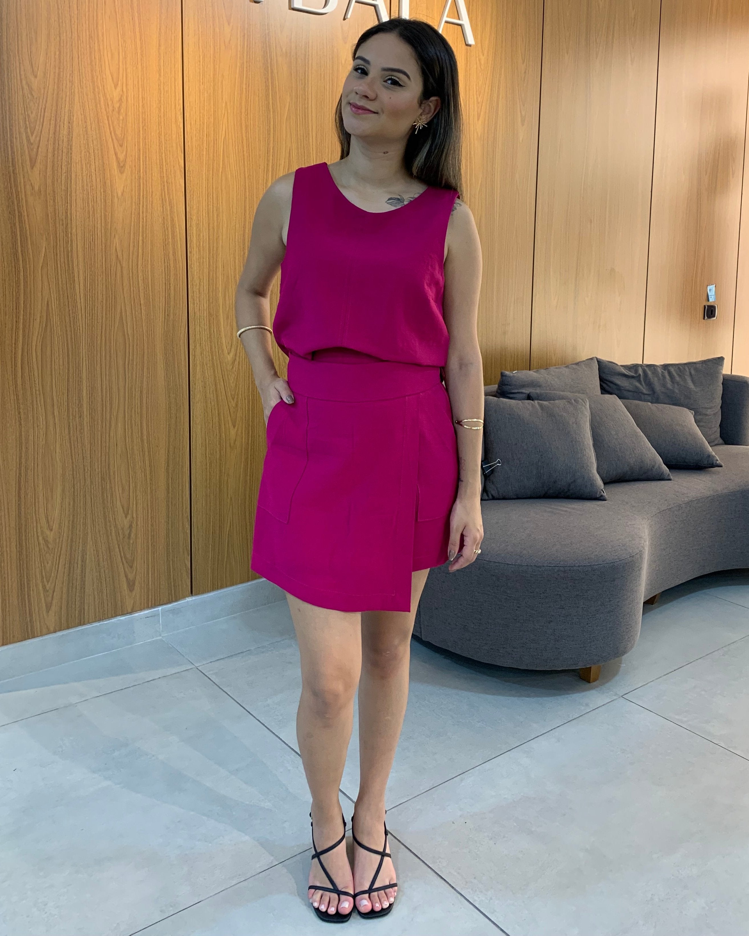 Conjunto de regata e shorts saia, ambos tem um zíper para facilitar na hora do uso. Aquele conjunto fresco para usar em qualquer ocasião!