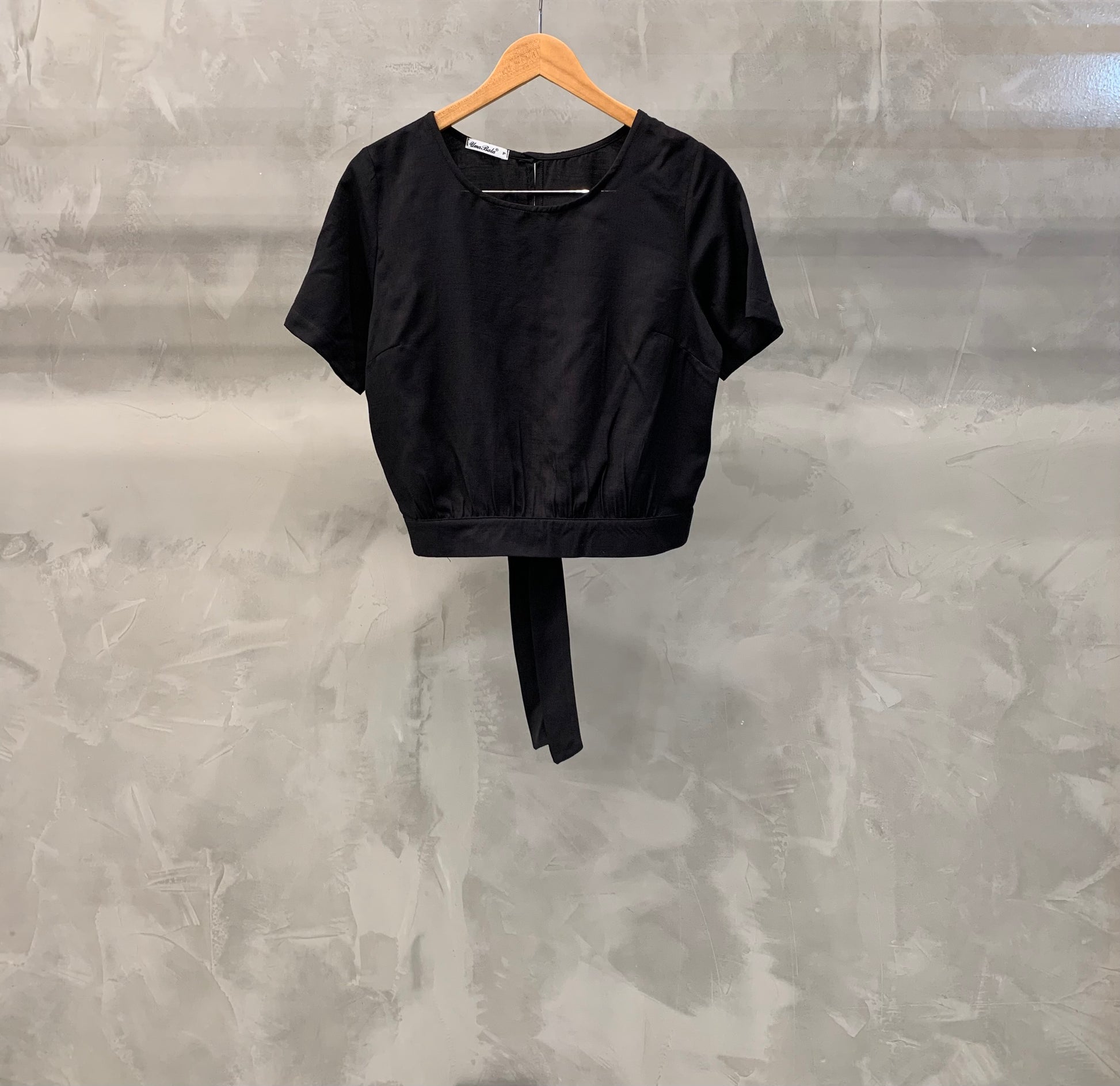 Blusa cropped com manga curta e amarração traseira. Um básico que você precisa ter no guarda roupa!