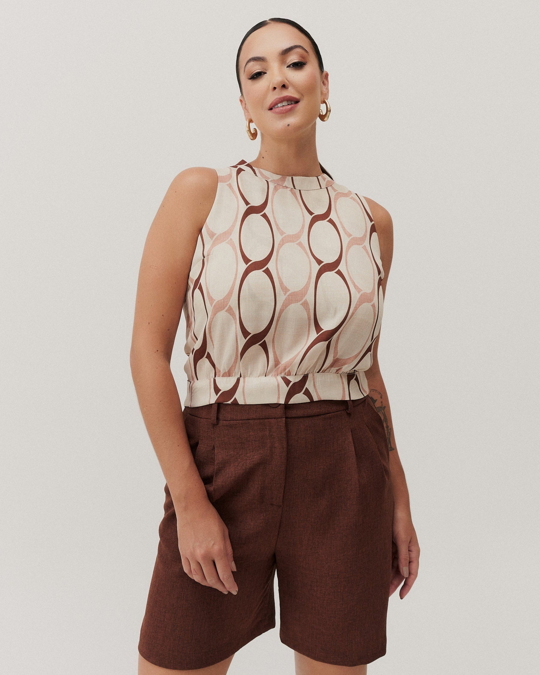 Blusa cropped estampada com alças largas e amarração traseira. Um básico que você precisa ter no guarda roupa!
