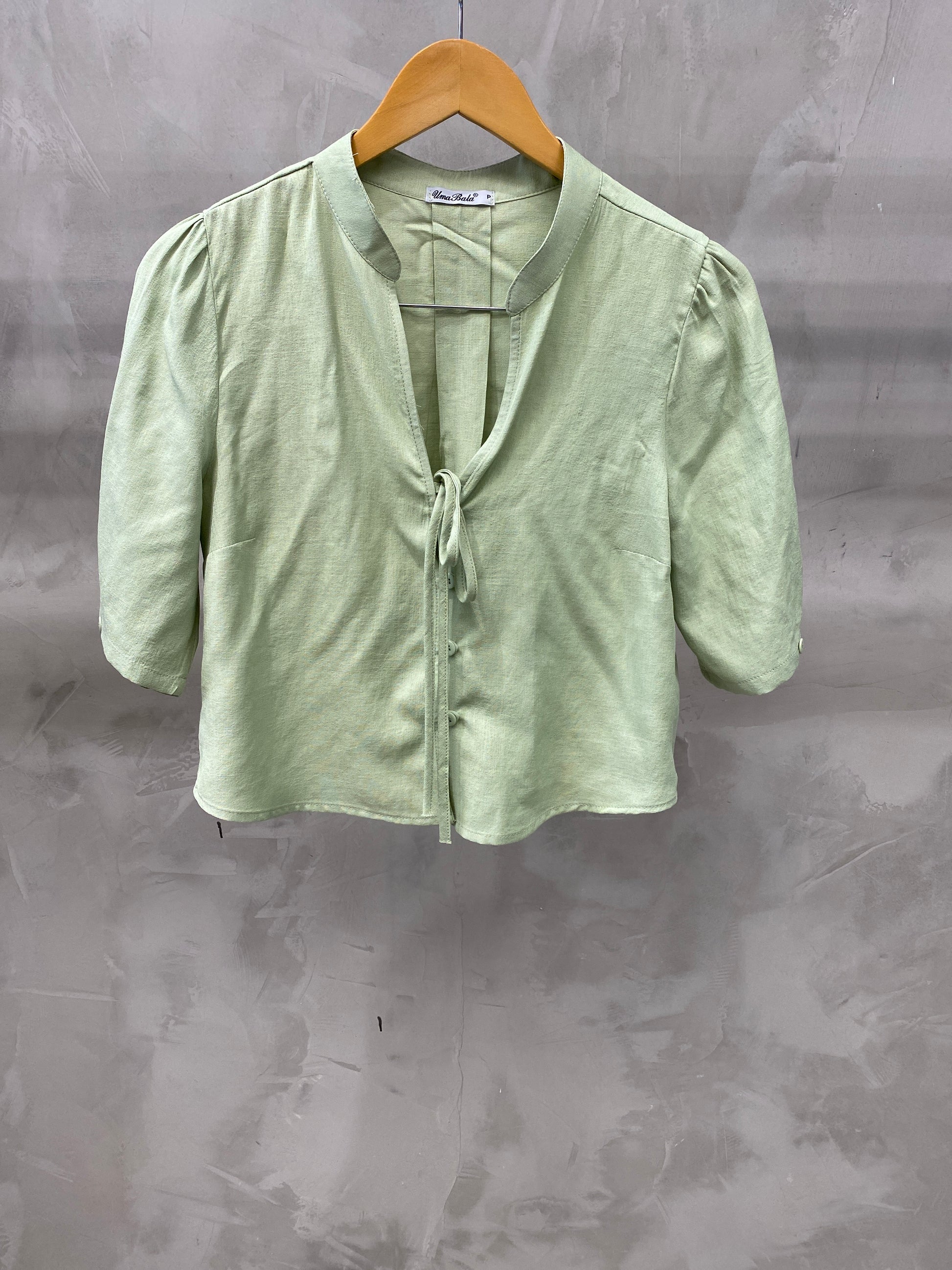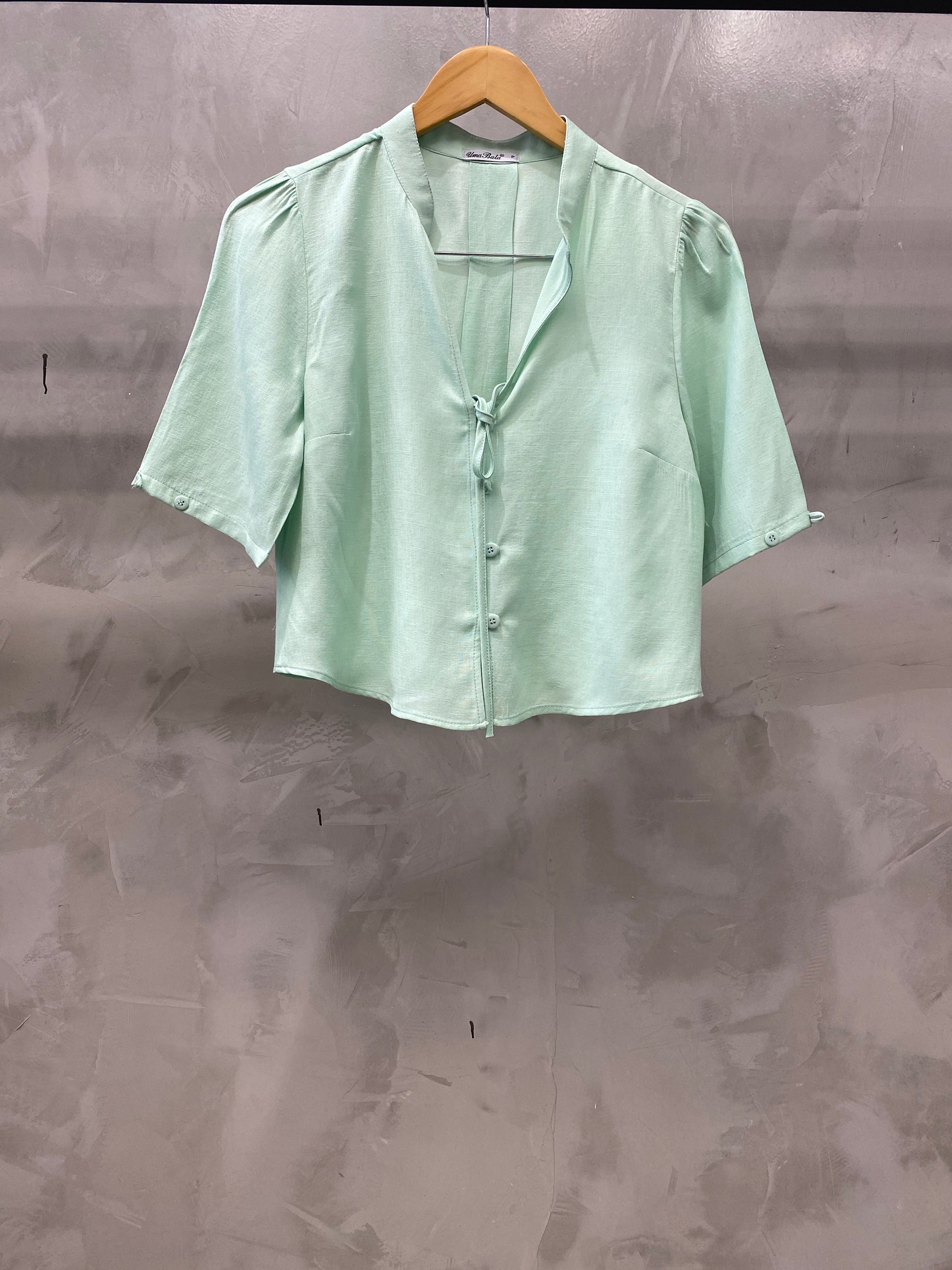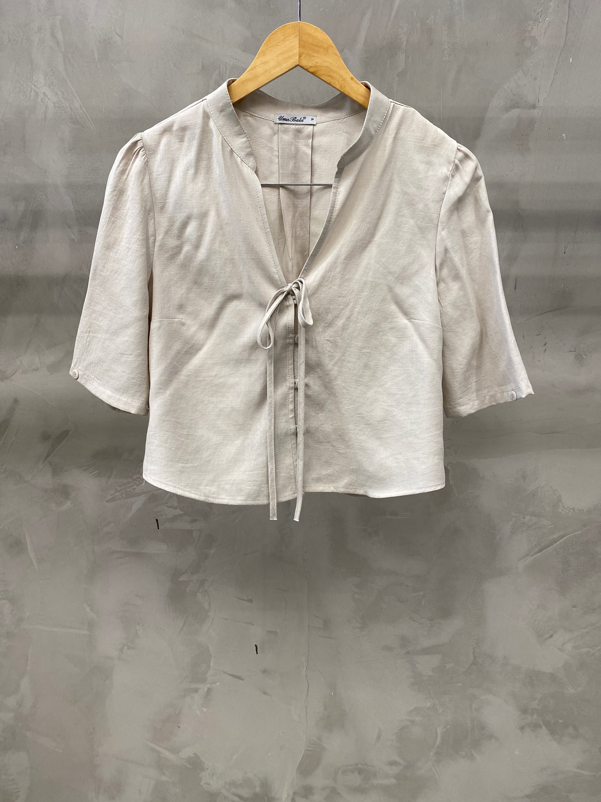 Bata cropped de manga bufante gola chinesa com decote V finalizado com uma amarração. Tem botões frontais que dão o charme e fica super na tendência Boho Chic. Confeccionado no tecido de Viscolinho.