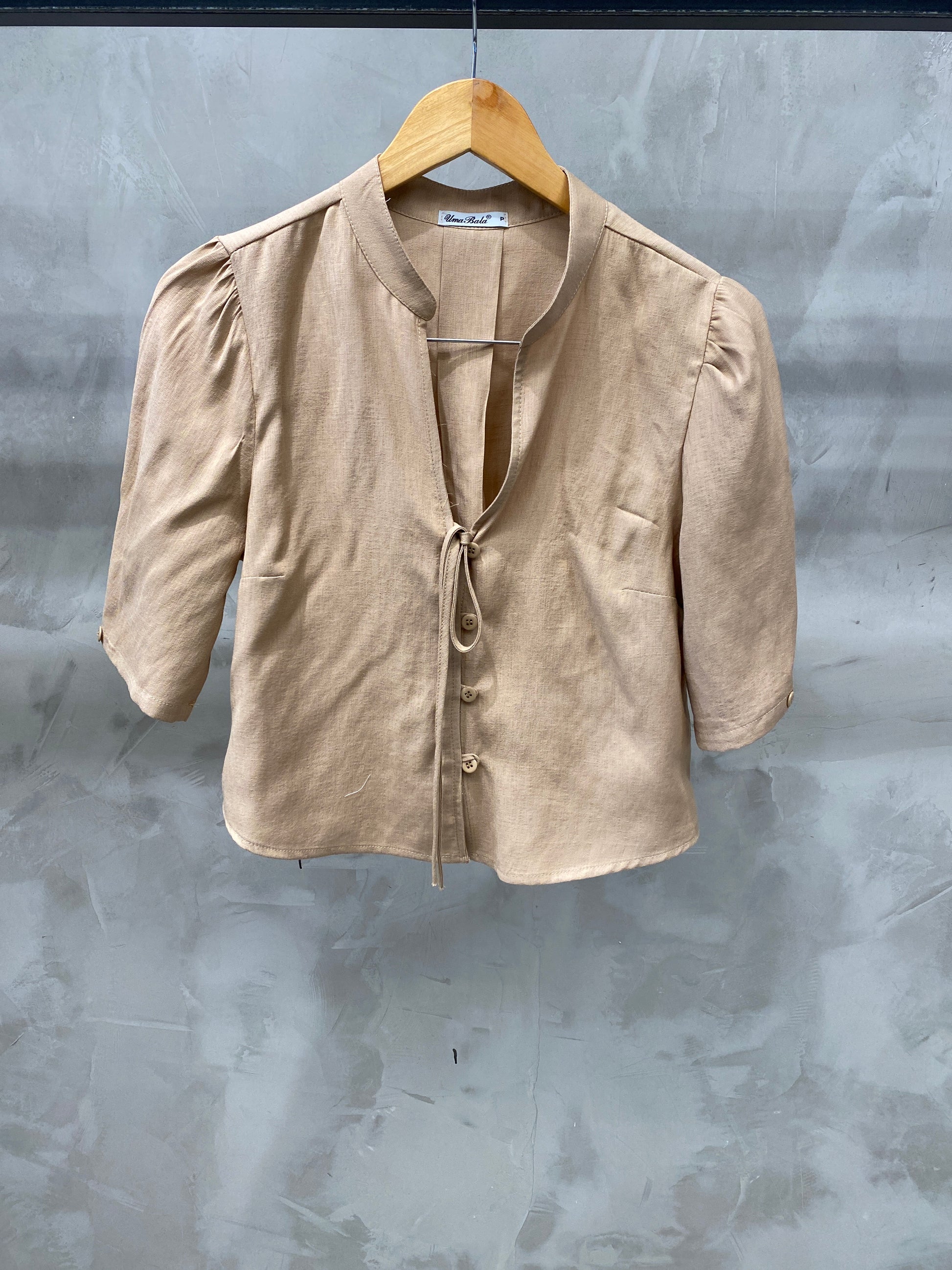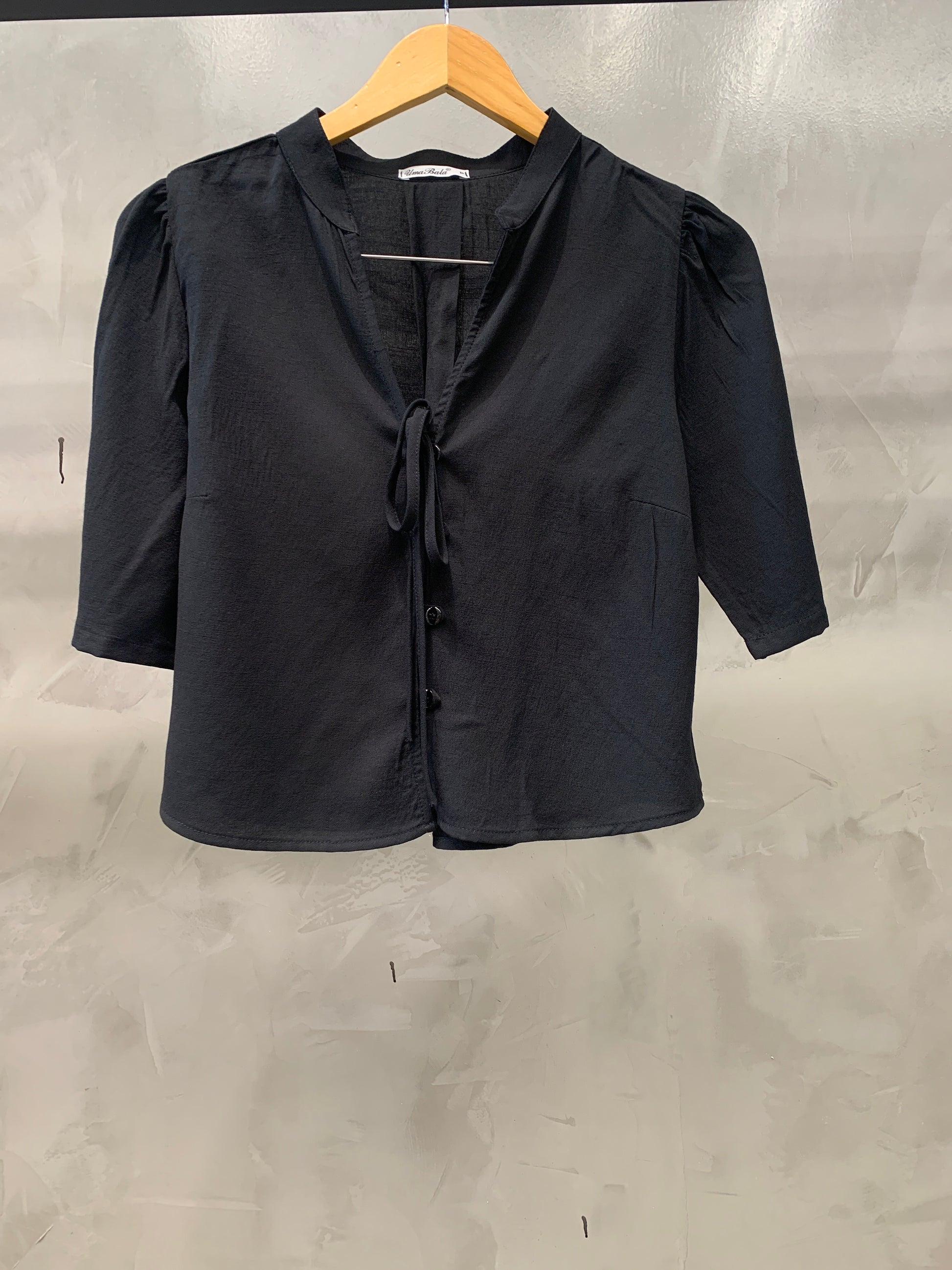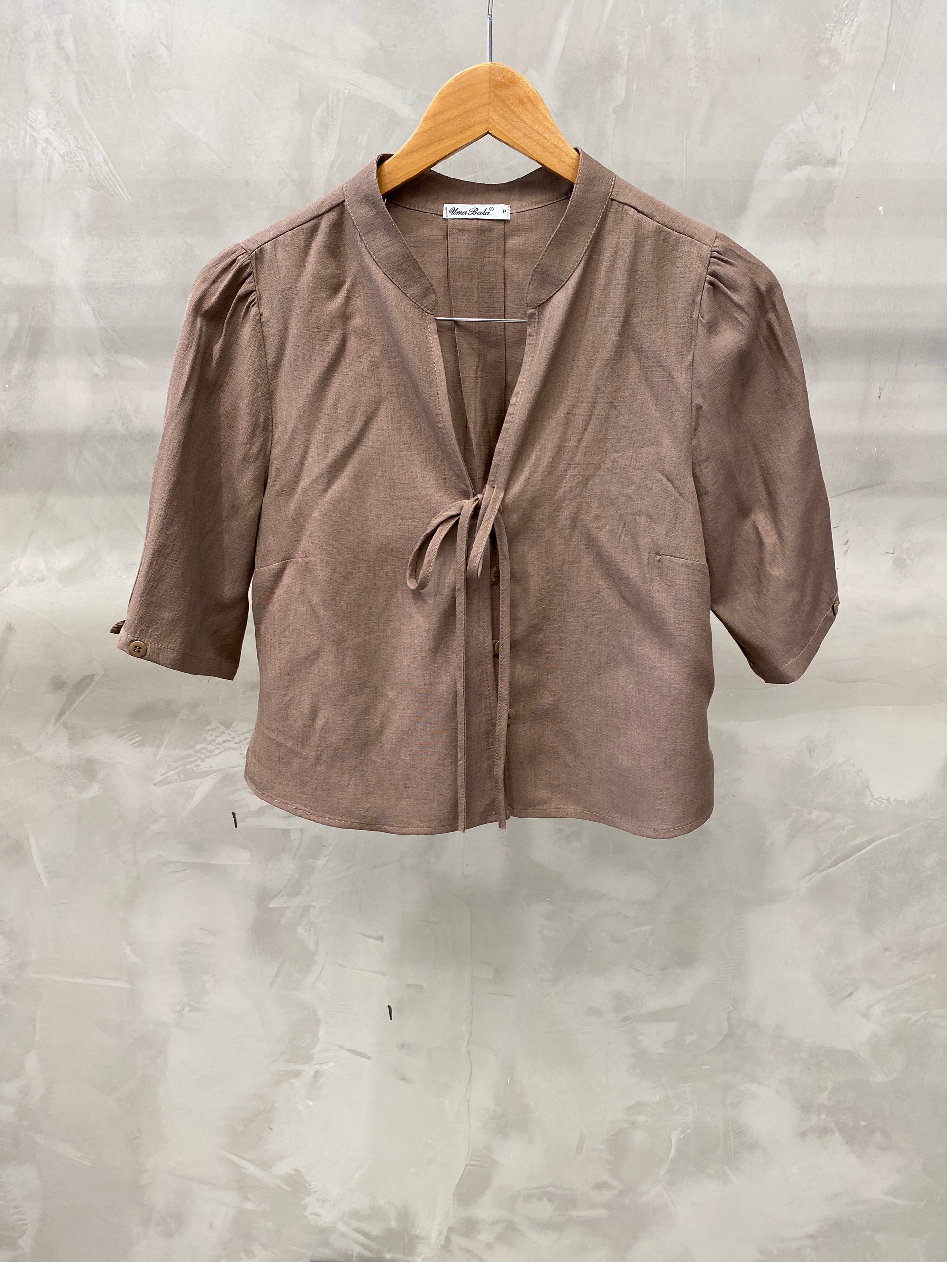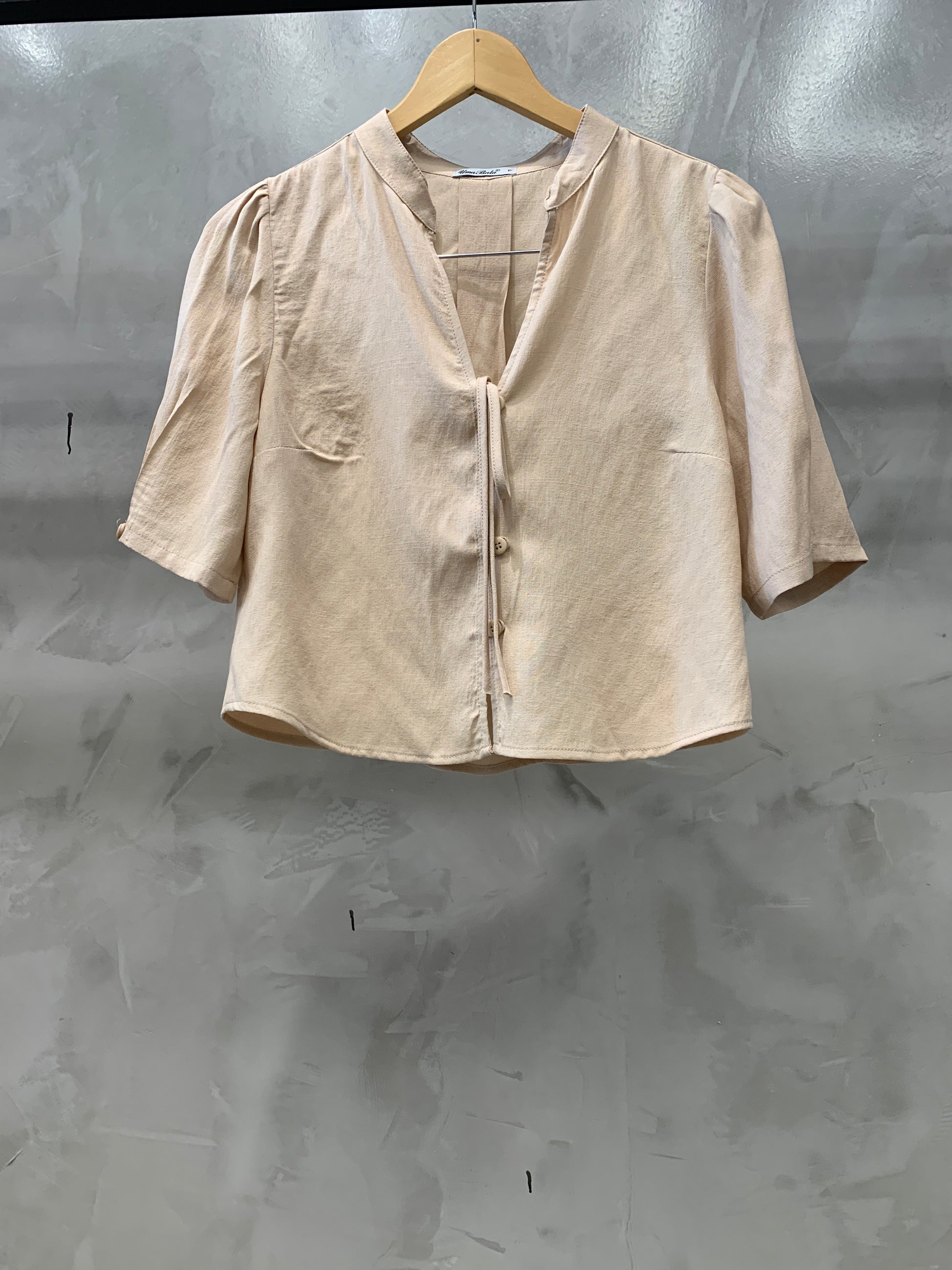 Bata cropped de manga bufante gola chinesa com decote V finalizado com uma amarração. Tem botões frontais que dão o charme e fica super na tendência Boho Chic. Confeccionado no tecido de Viscolinho.