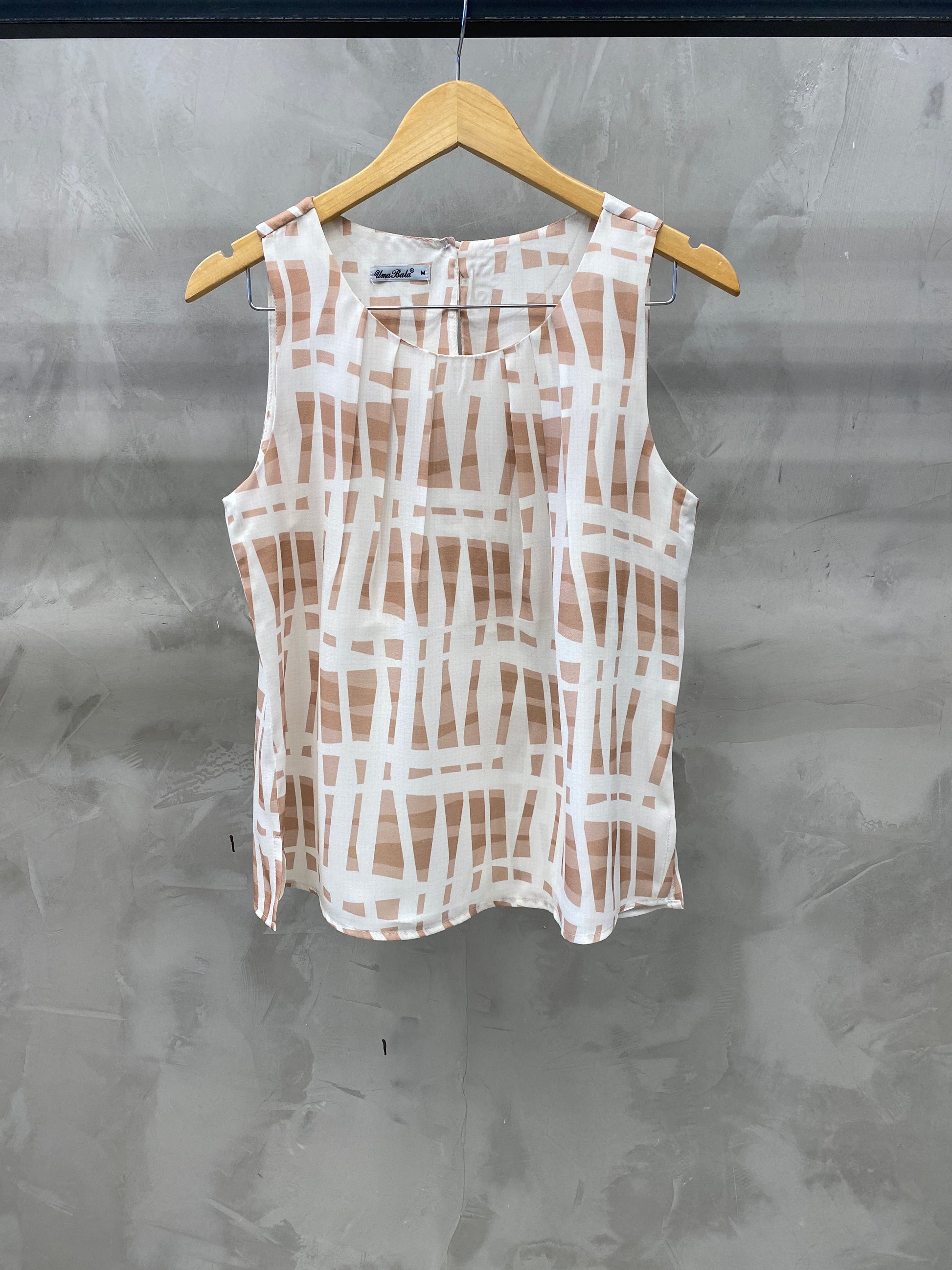 Regata Estampada de alça larga e pregas no busto. Um básico perfeito para o dia a dia