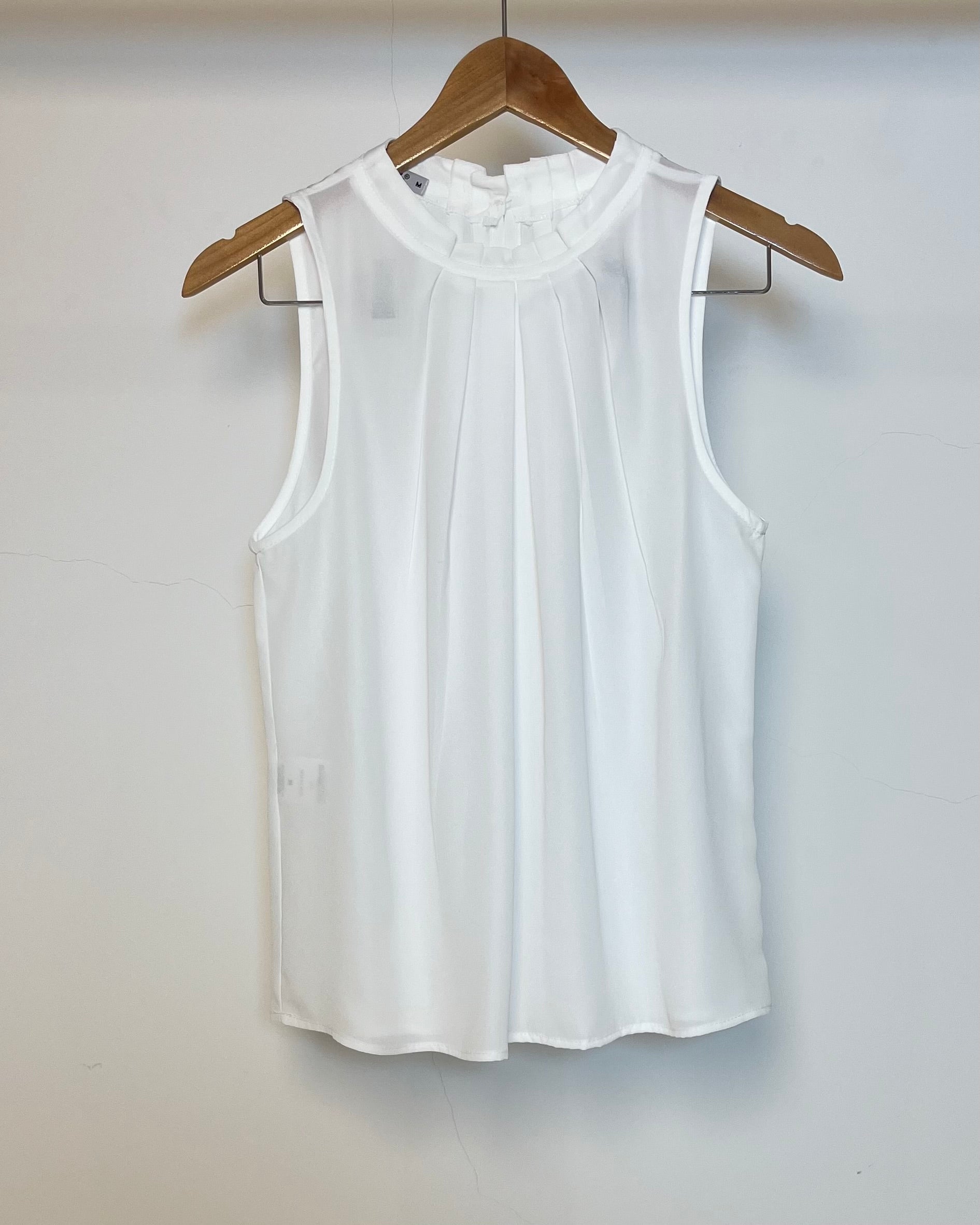 Regata solta com alça larga e decote redondo com pregas. É um básico essencial para o dia a dia.