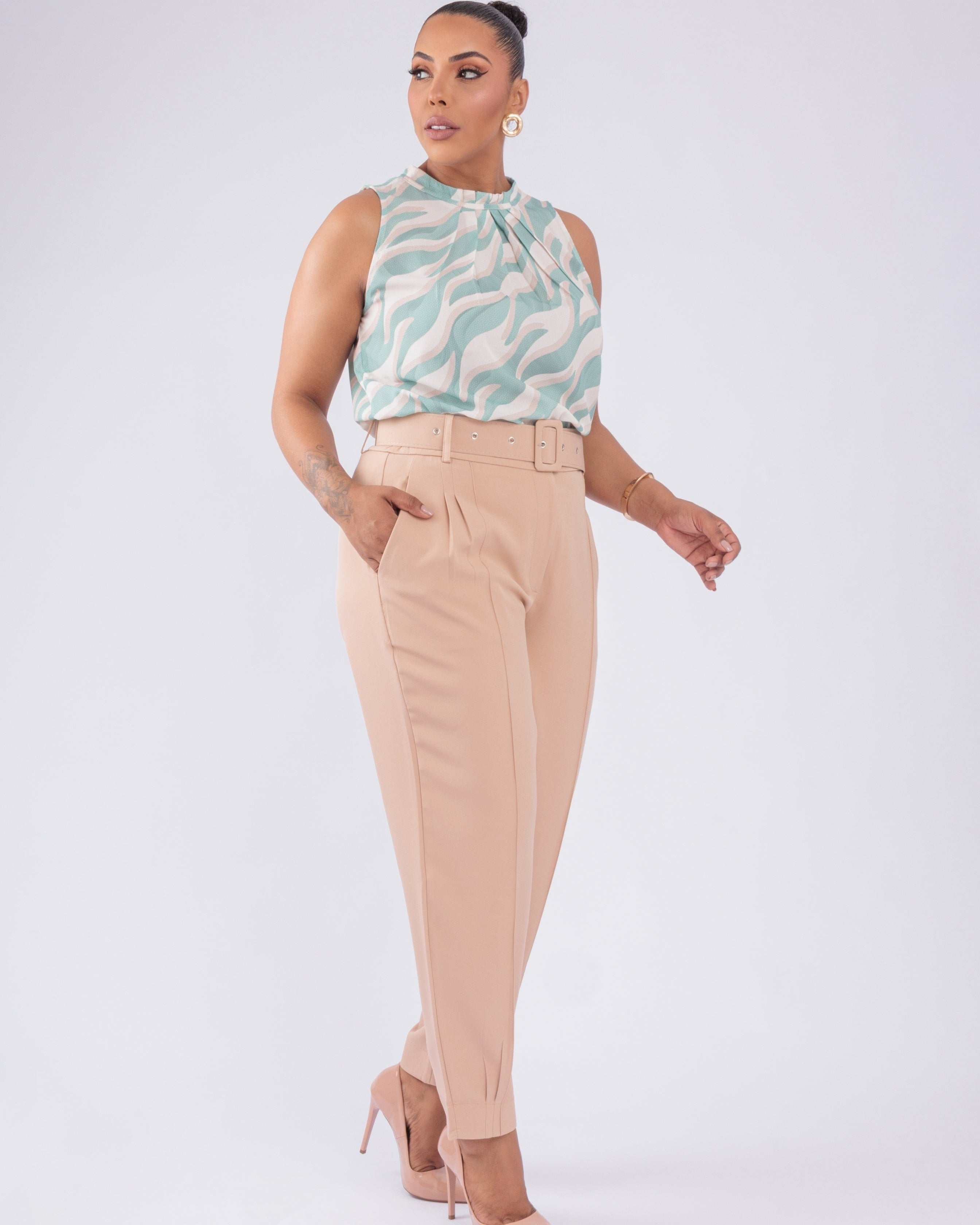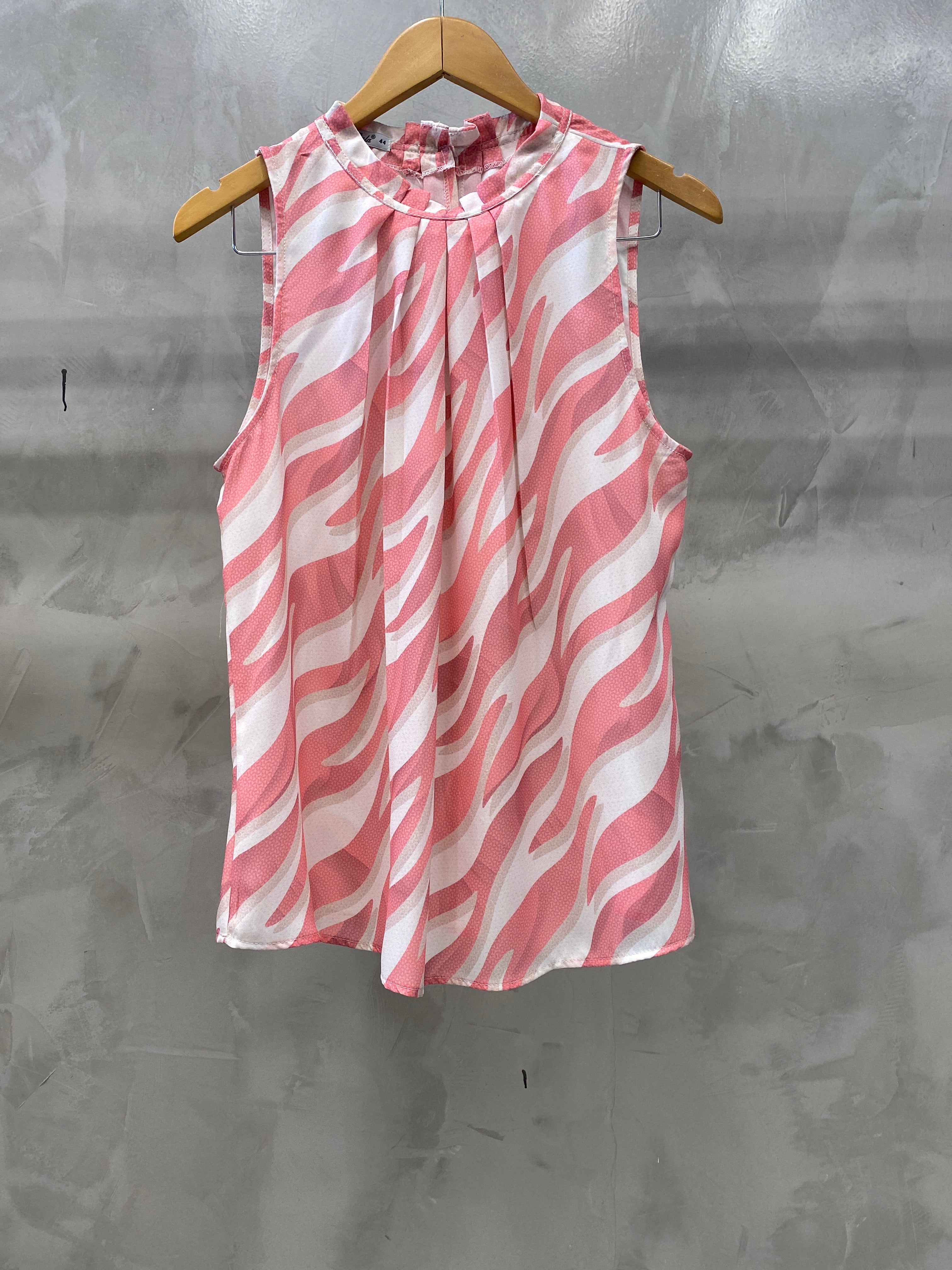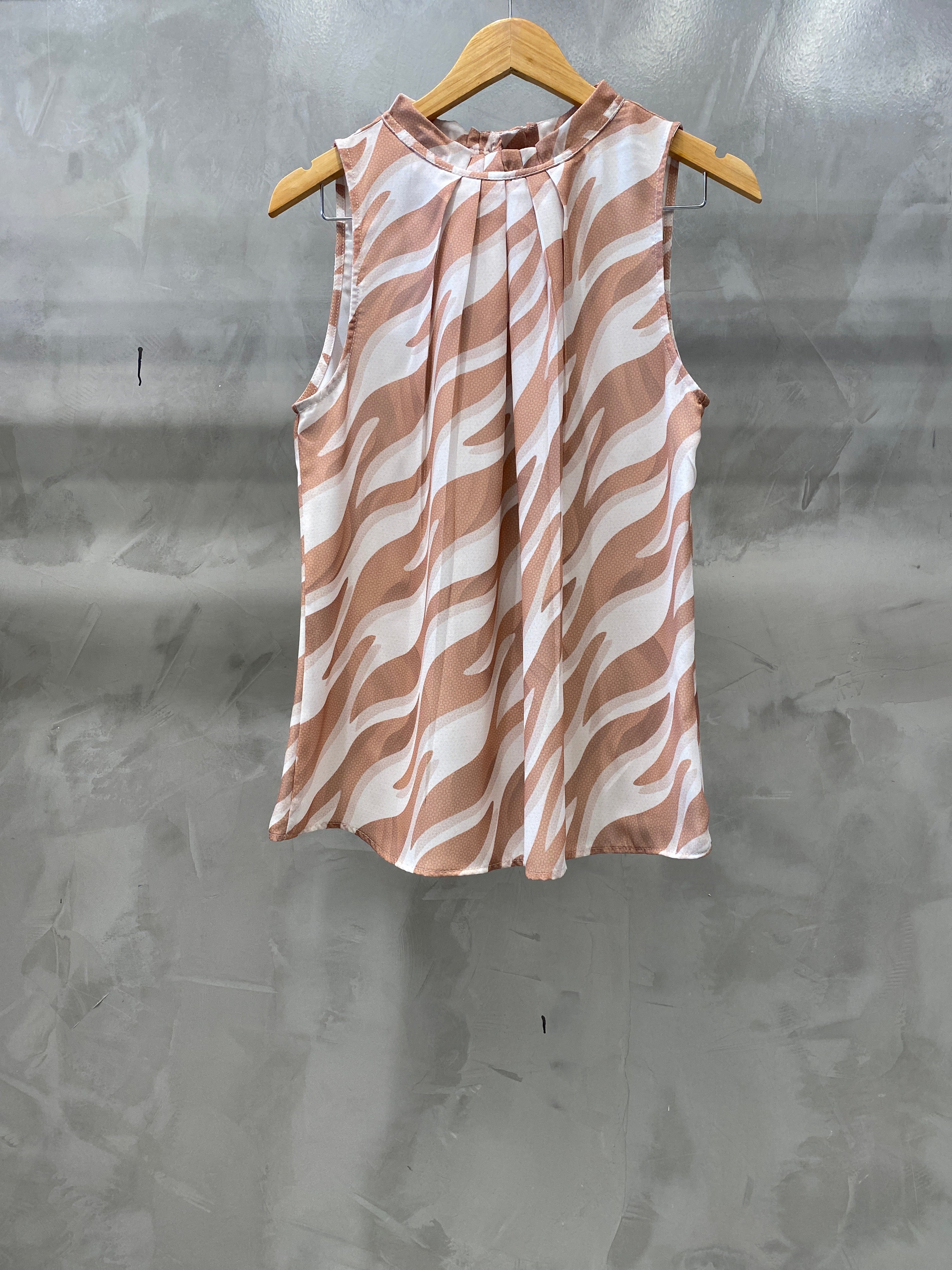 Regata Plus size, solta, com alça larga e botão traseiro. Tem detalhe de dobras e pregas na gola, que dá um ar moderno na peça.