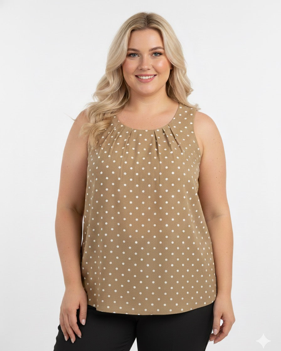 Regata Plus de Poa com pregas o busto, um básico perfeito para o dia a dia!