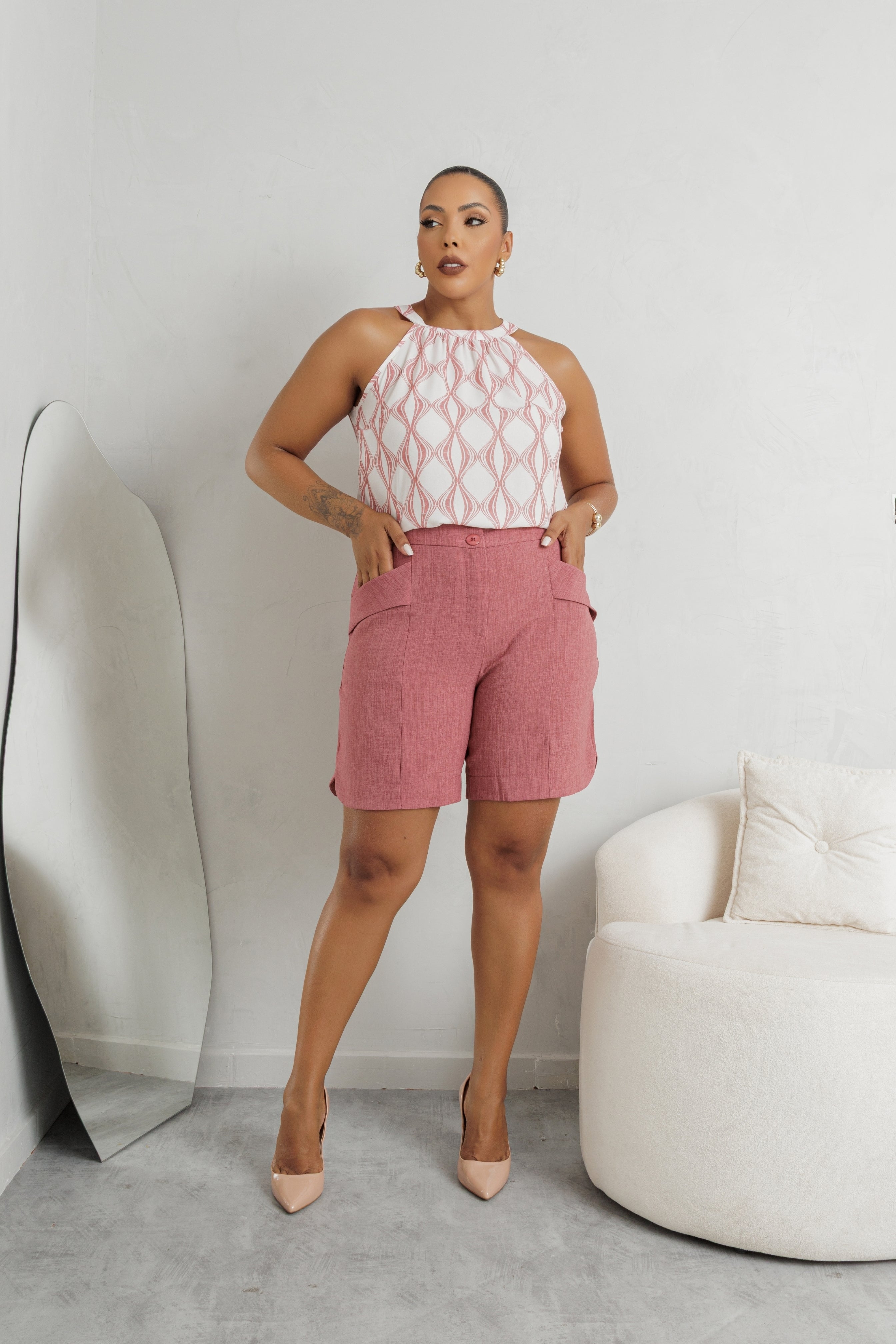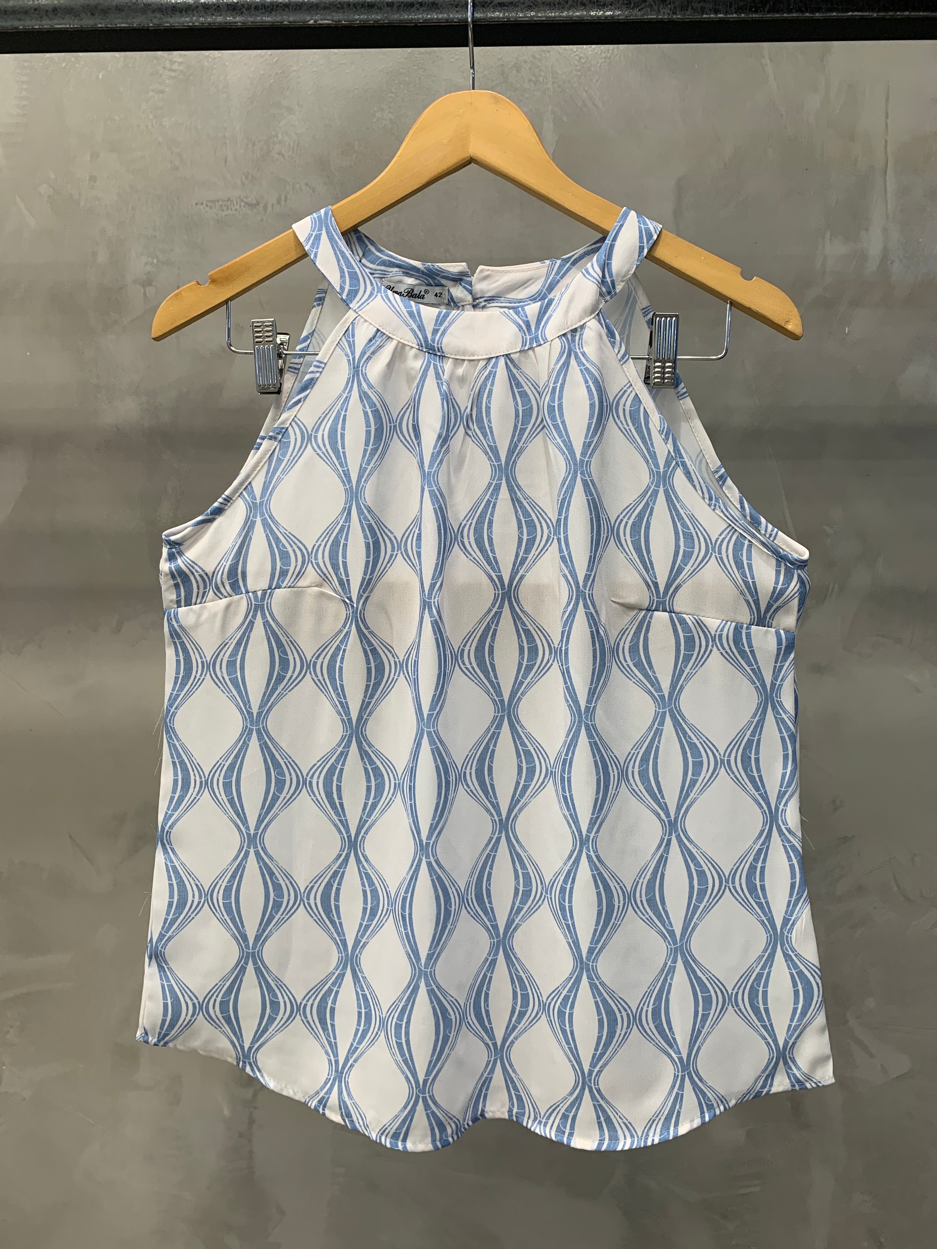 Regata estampada solta com pregas na gola, peça chave para usar em diversos looks!