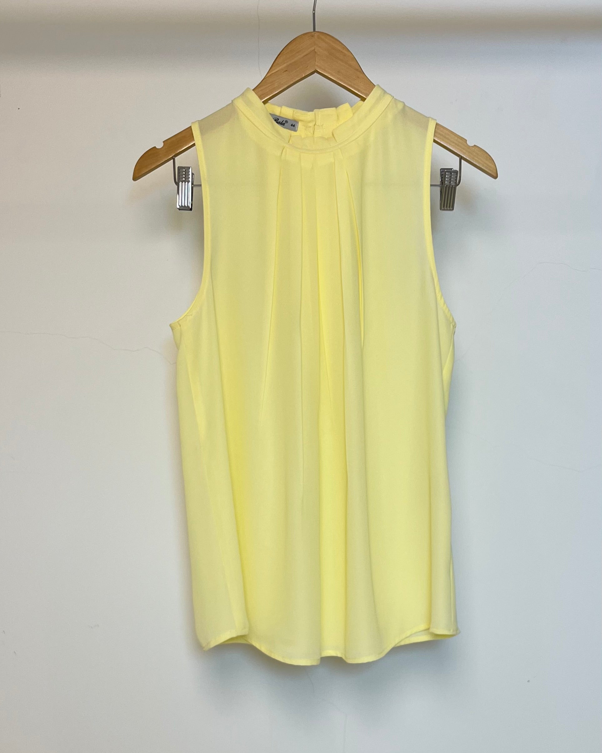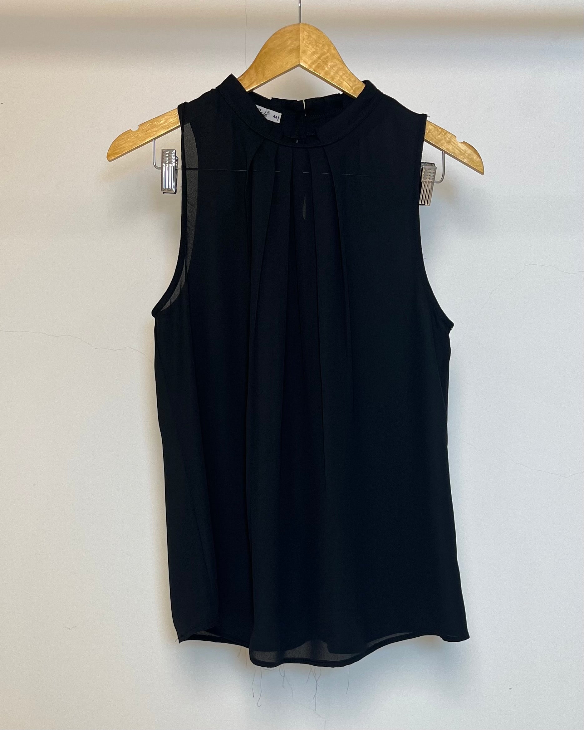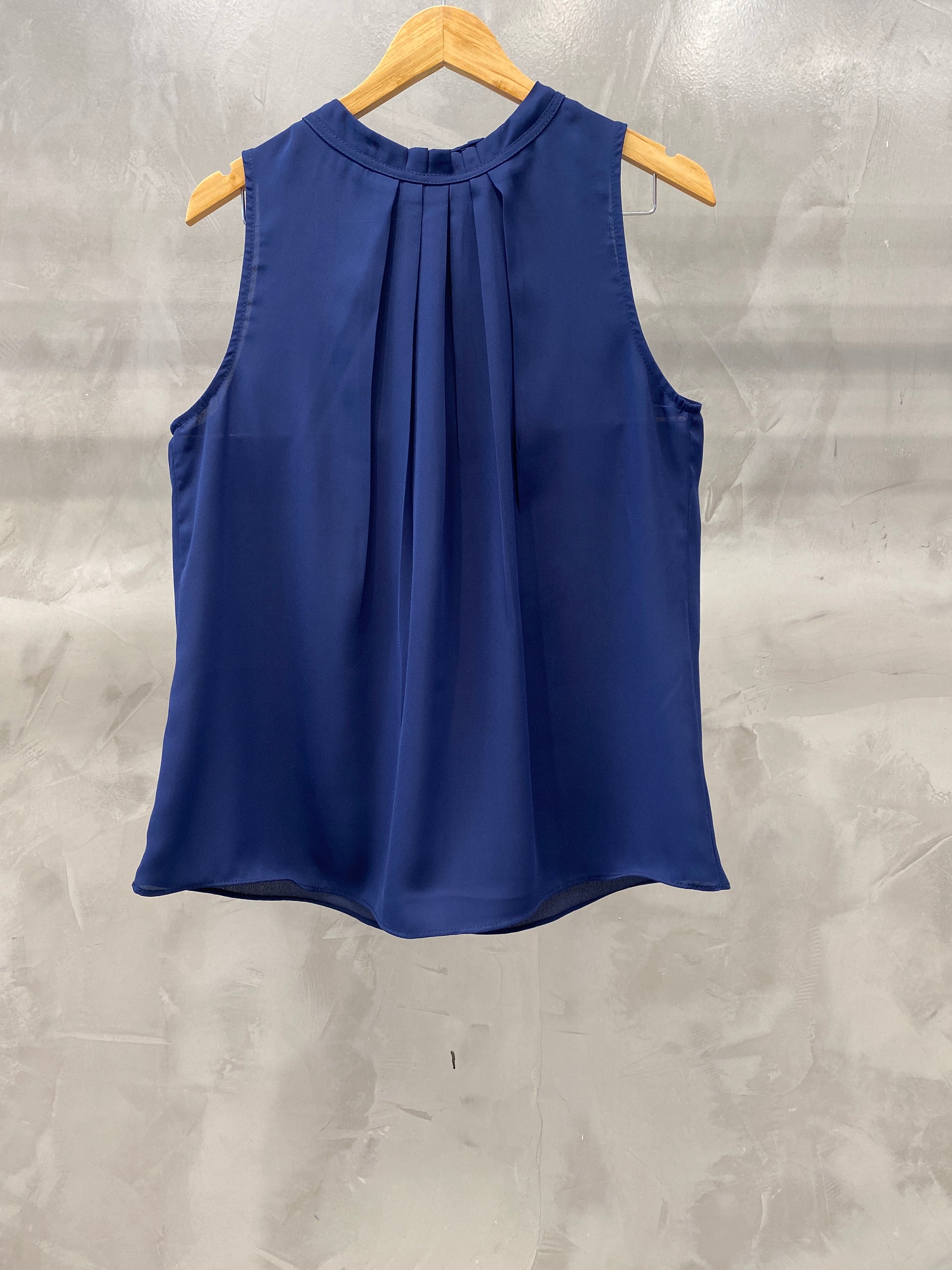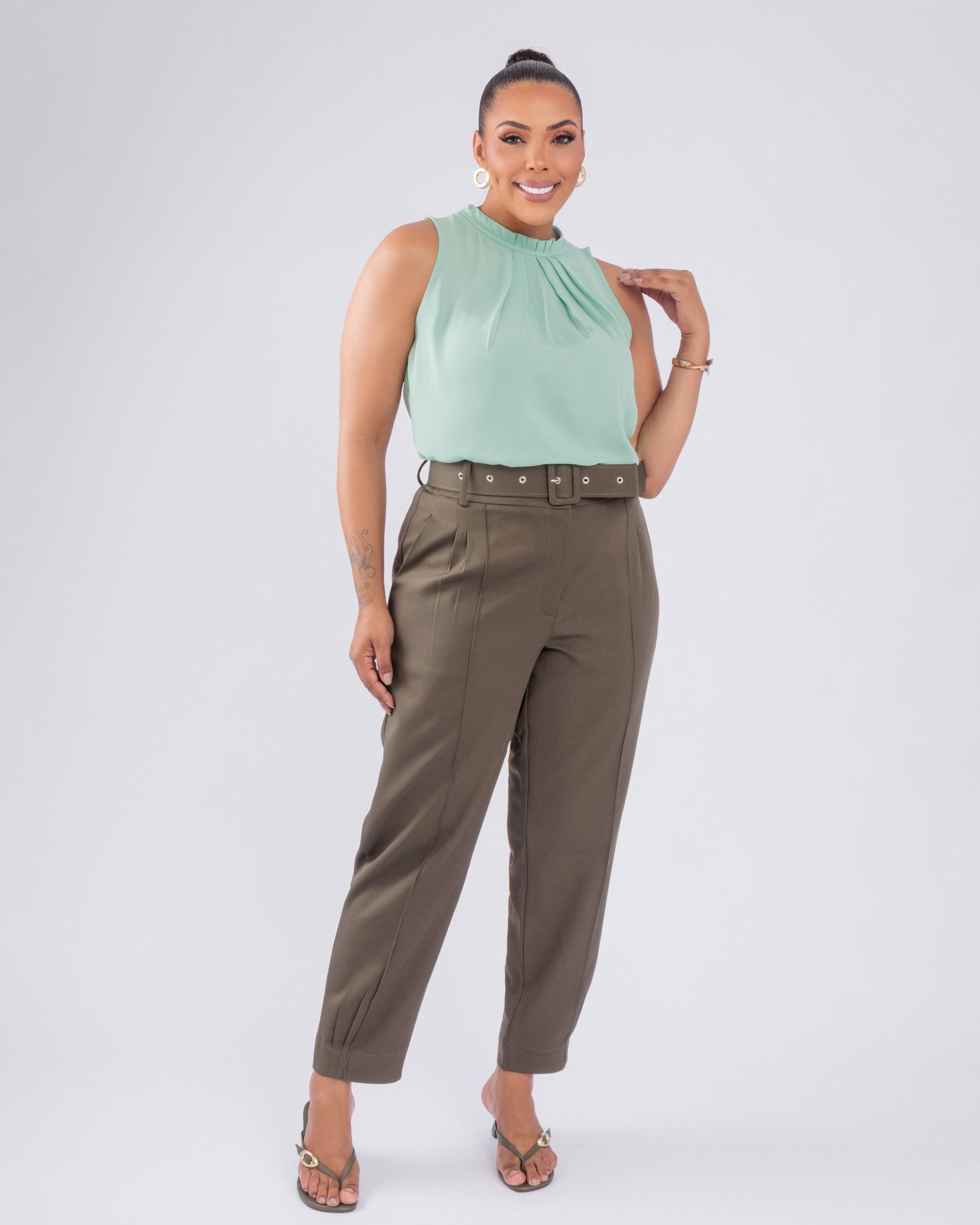 Regata Plus size, solta, com alça larga e botão traseiro. Tem detalhe de dobras e pregas na gola, que dá um ar moderno na peça.