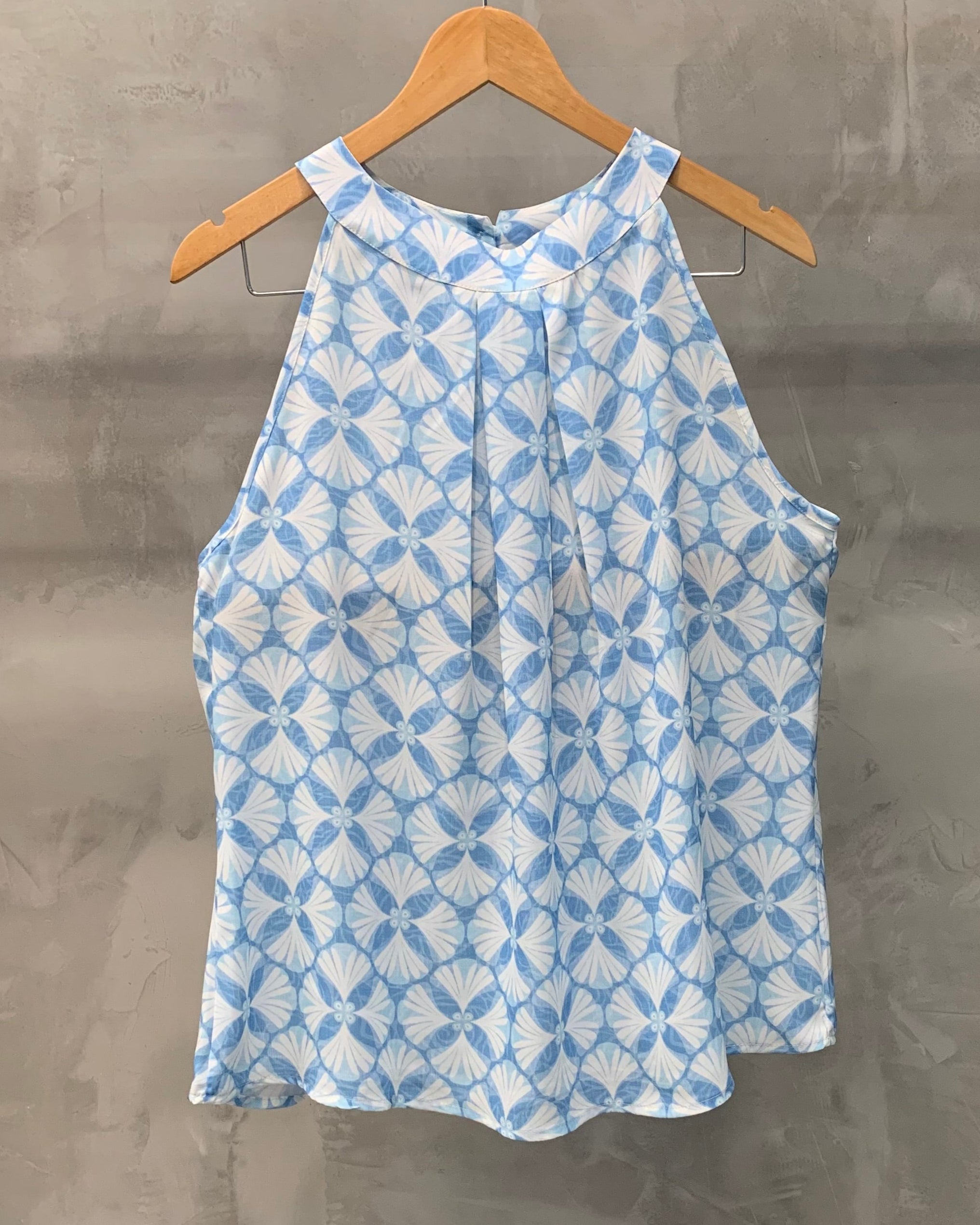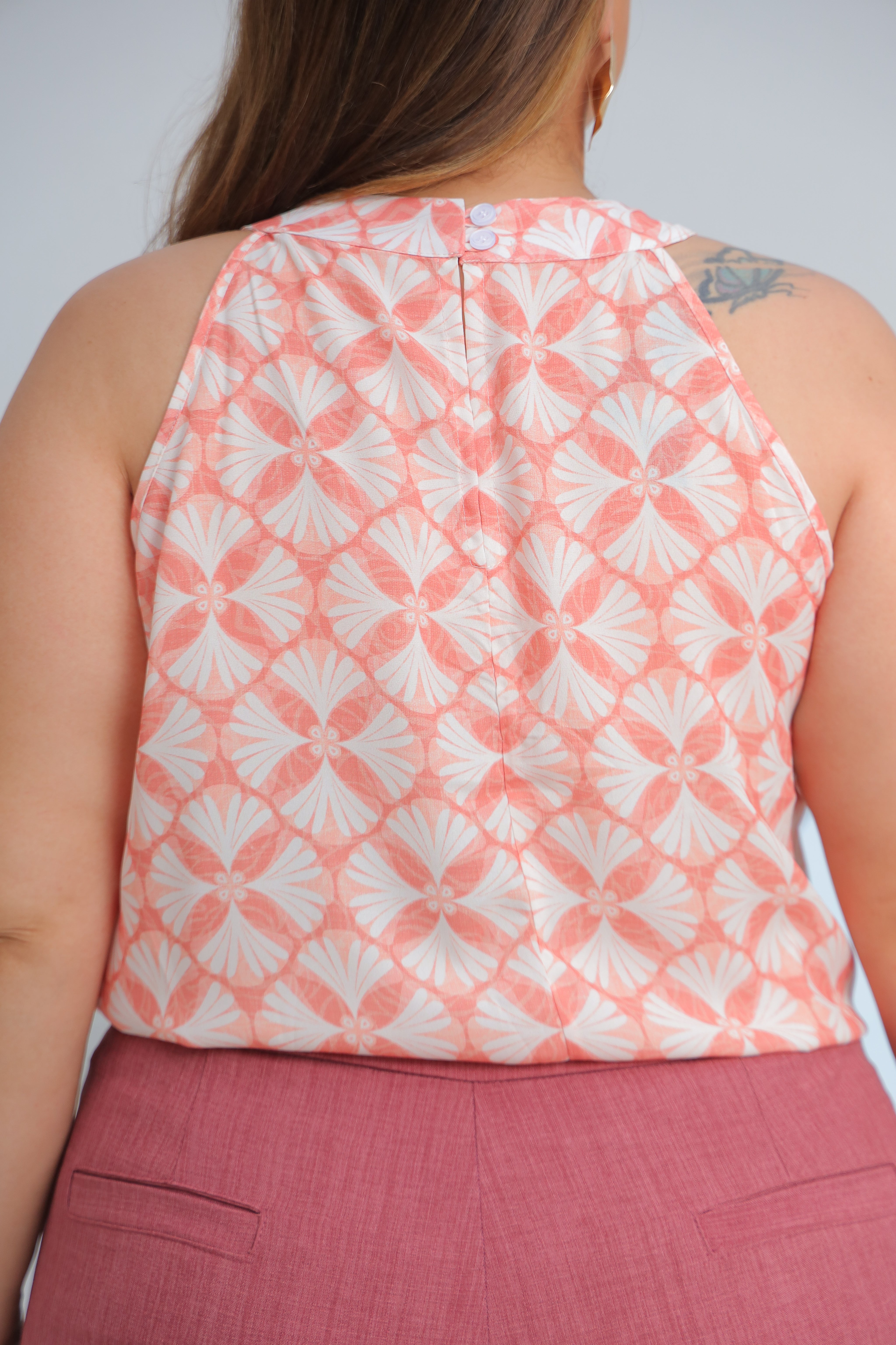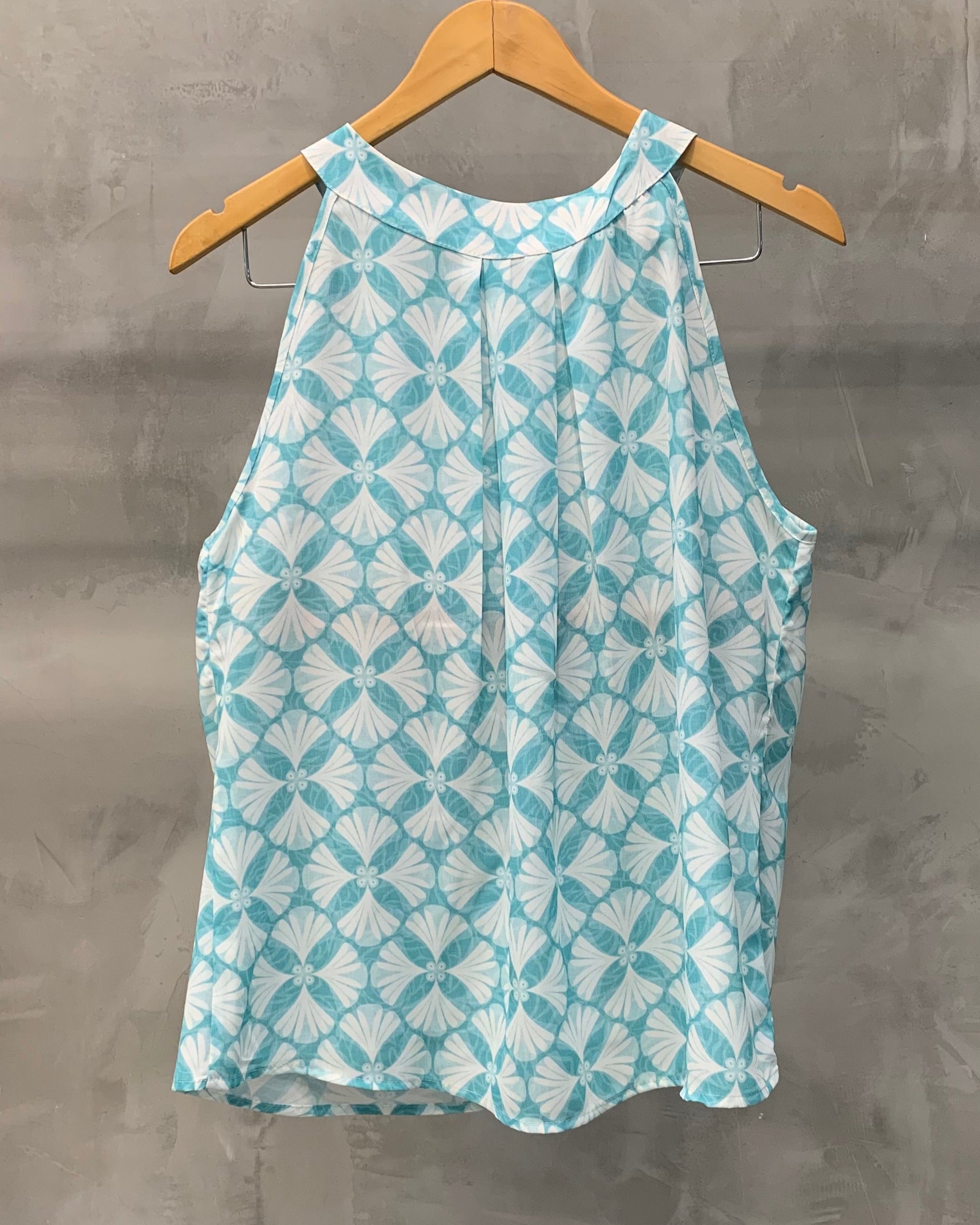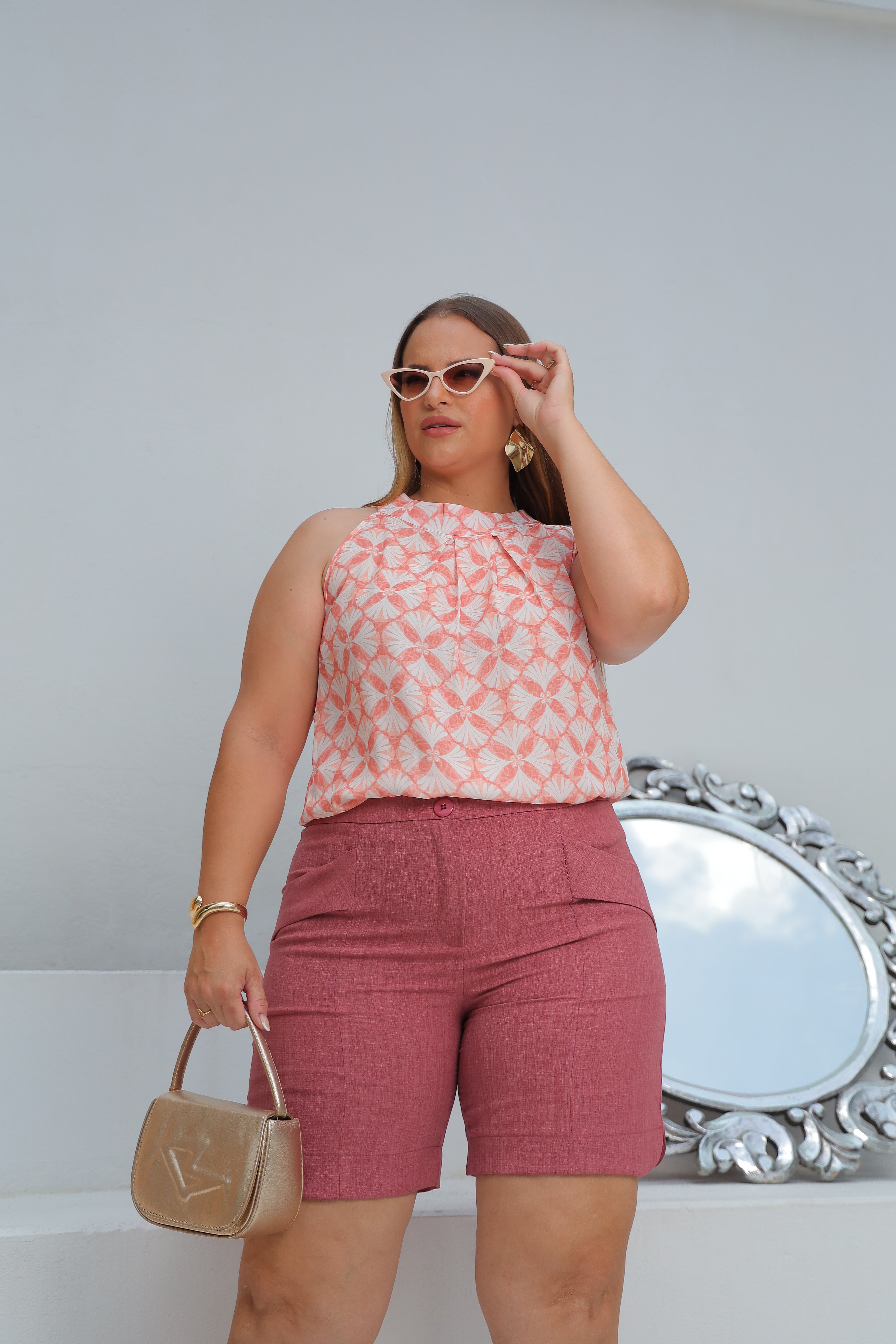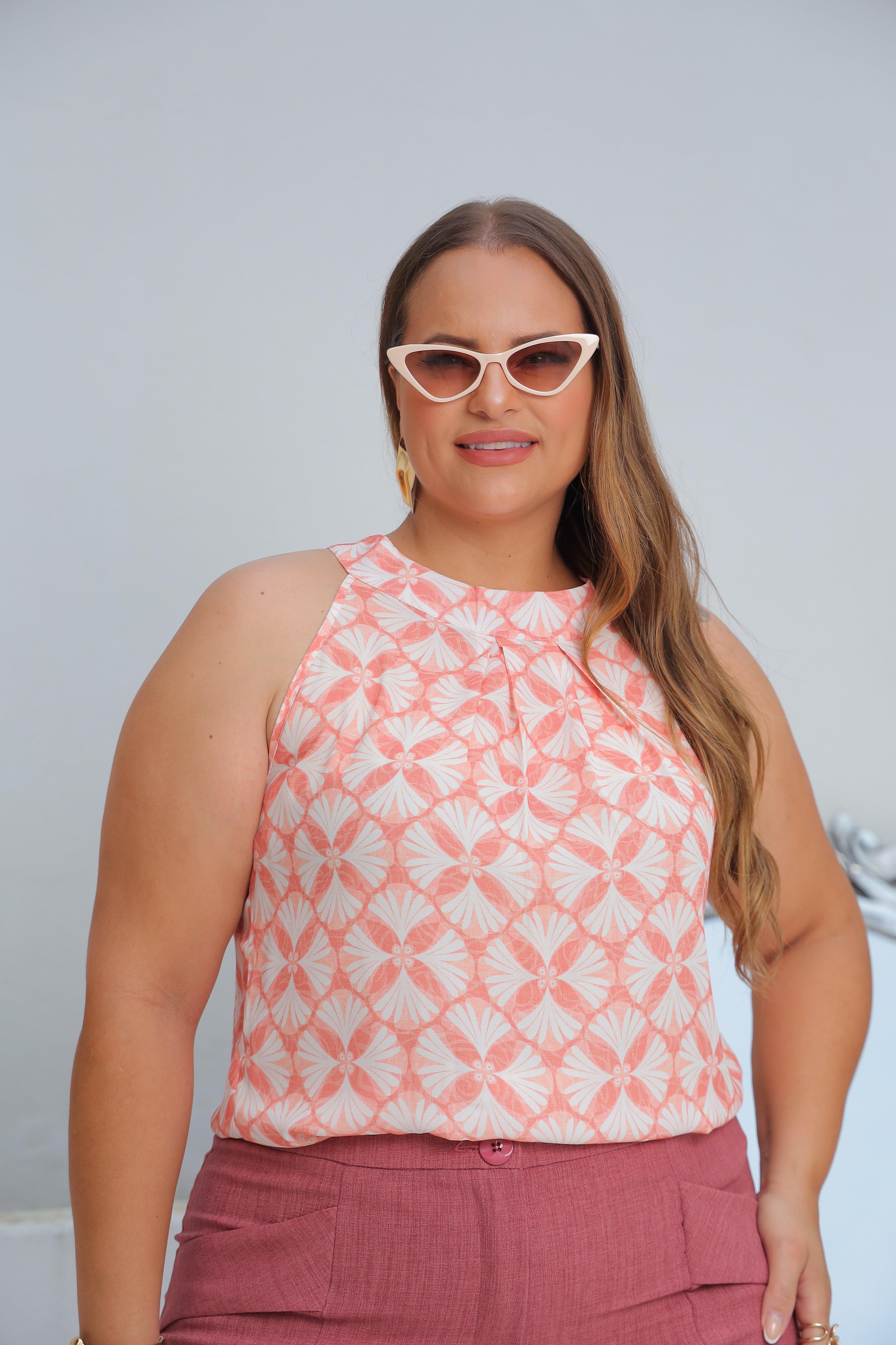 Regata plus size gola alta com pregas dupla na gola.