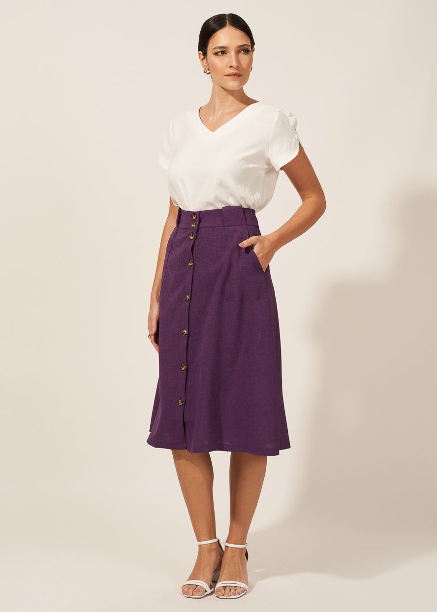 Saia Mídi Com detalhes de Botões Na Frente | Composição: 100% Poliéster