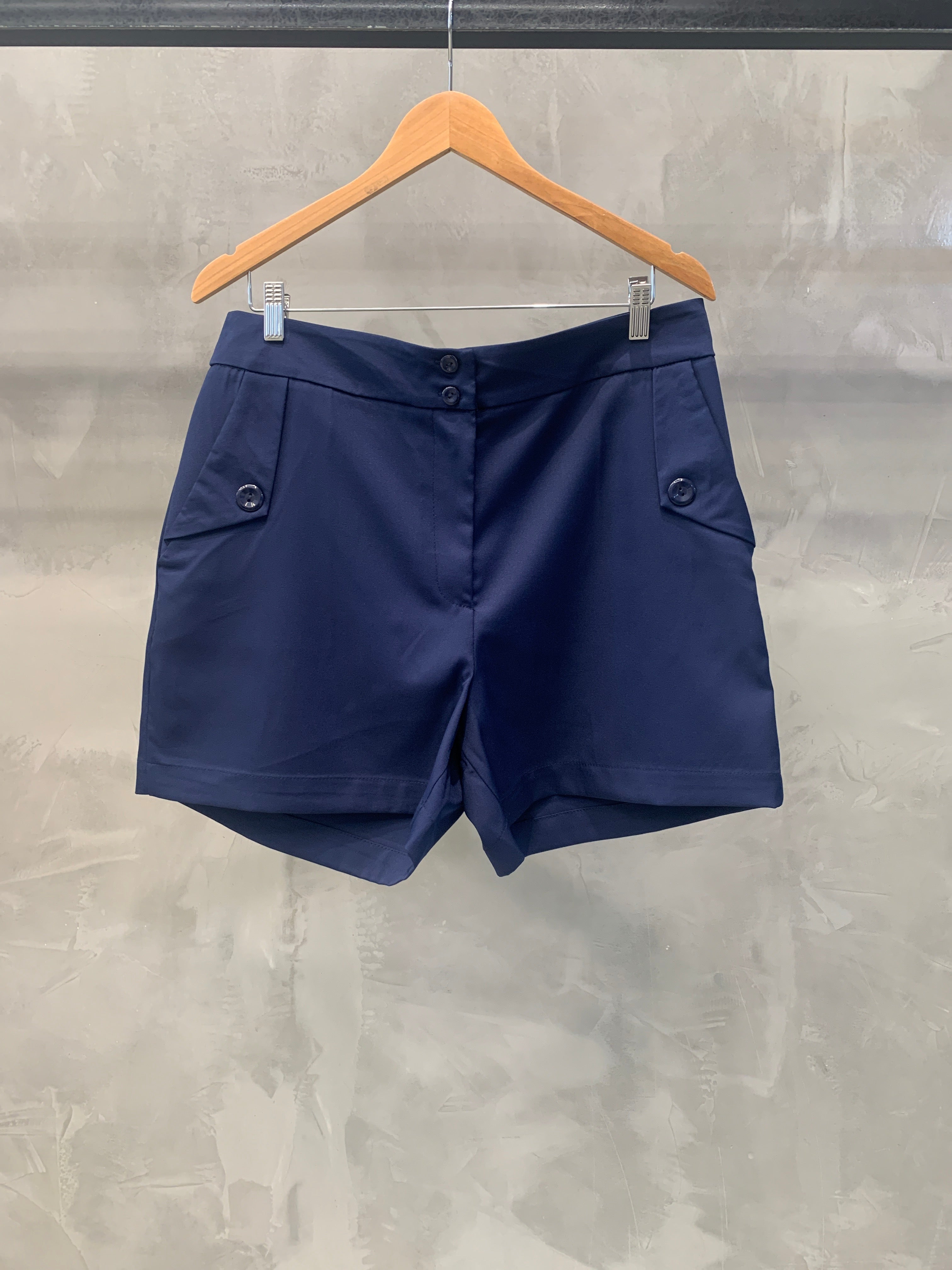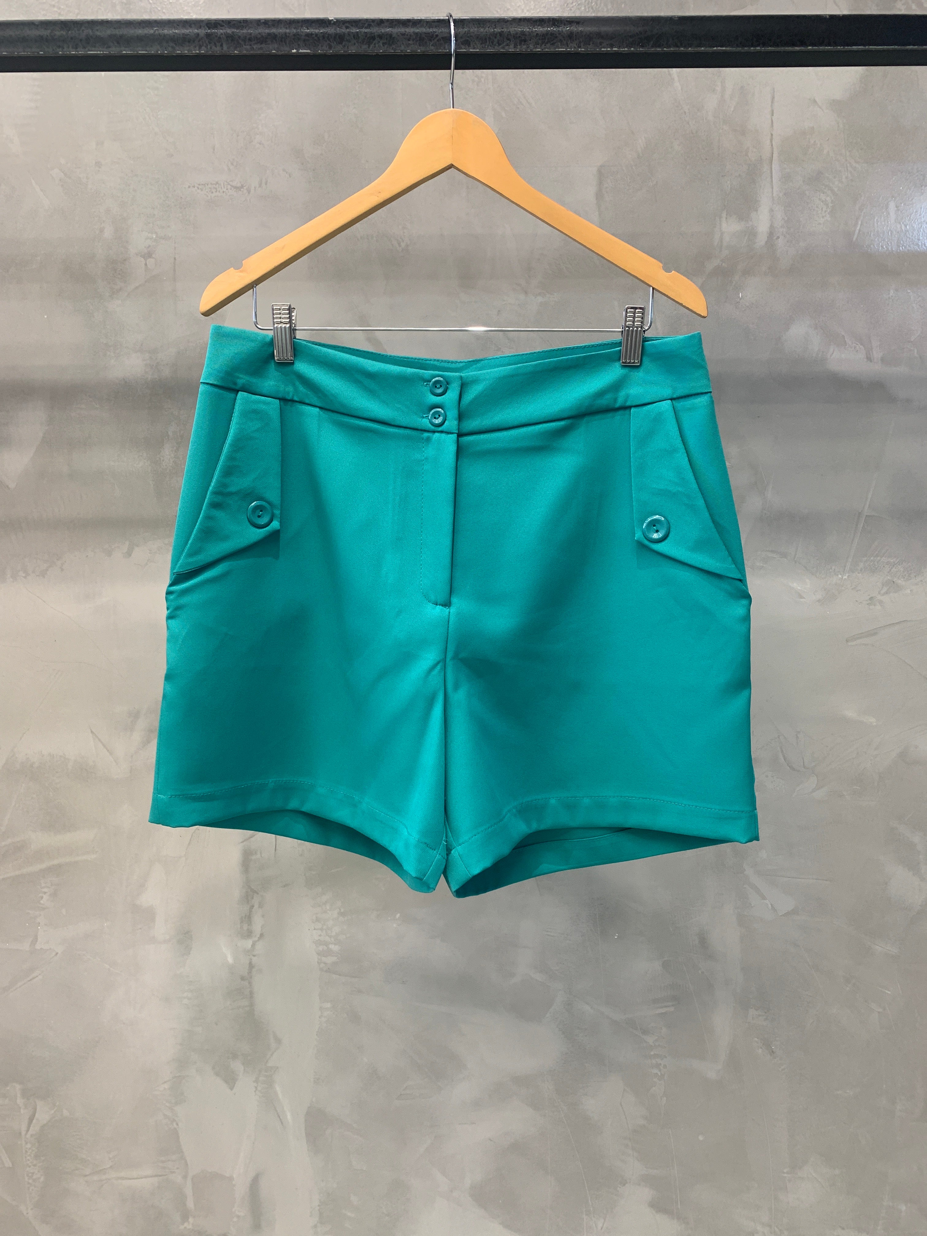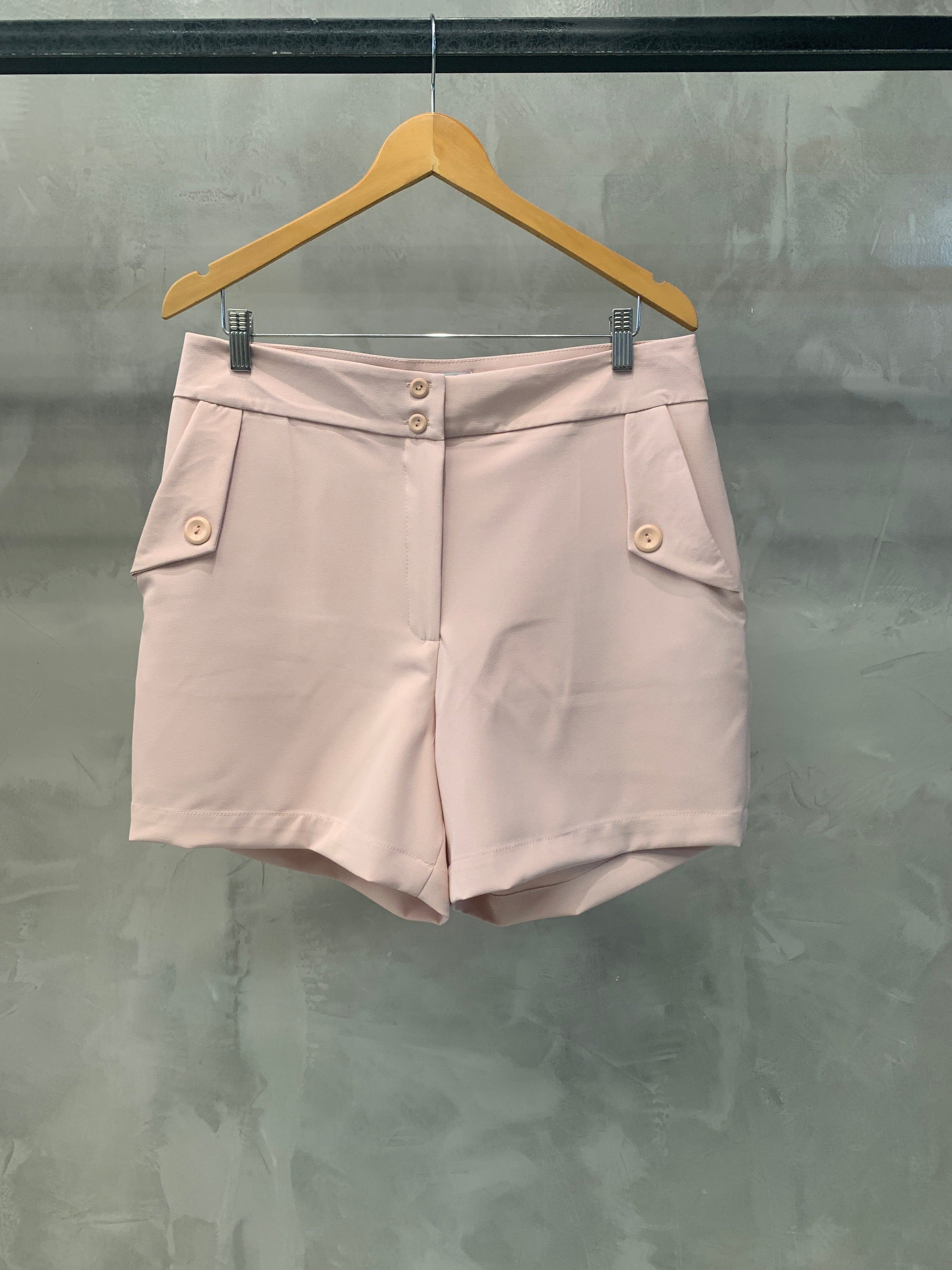 Shorts curto Plus, com botões e bolsos frontais. Uma peça chave para o seu guarda roupa! Confeccionada no tecido de alfaiataria.