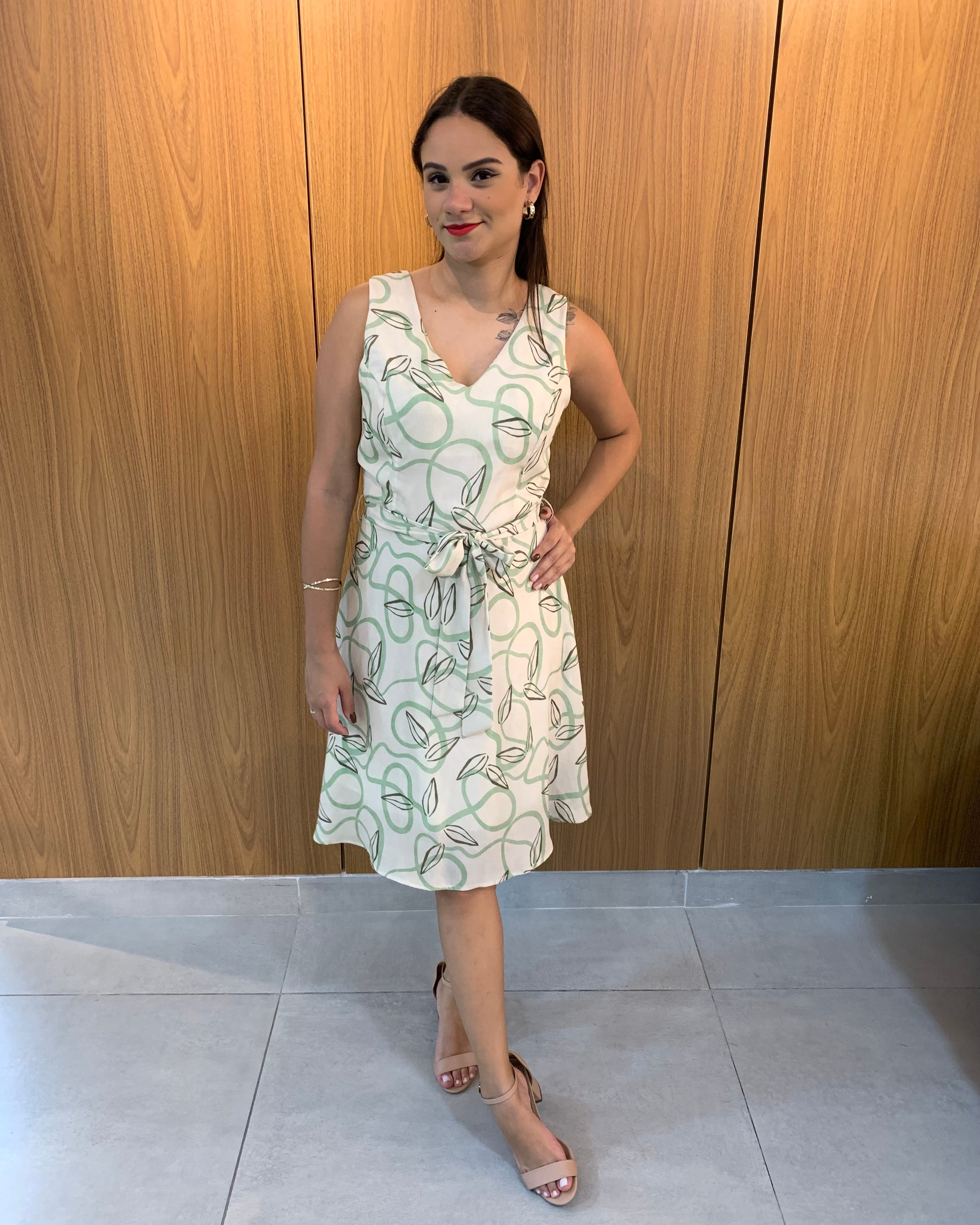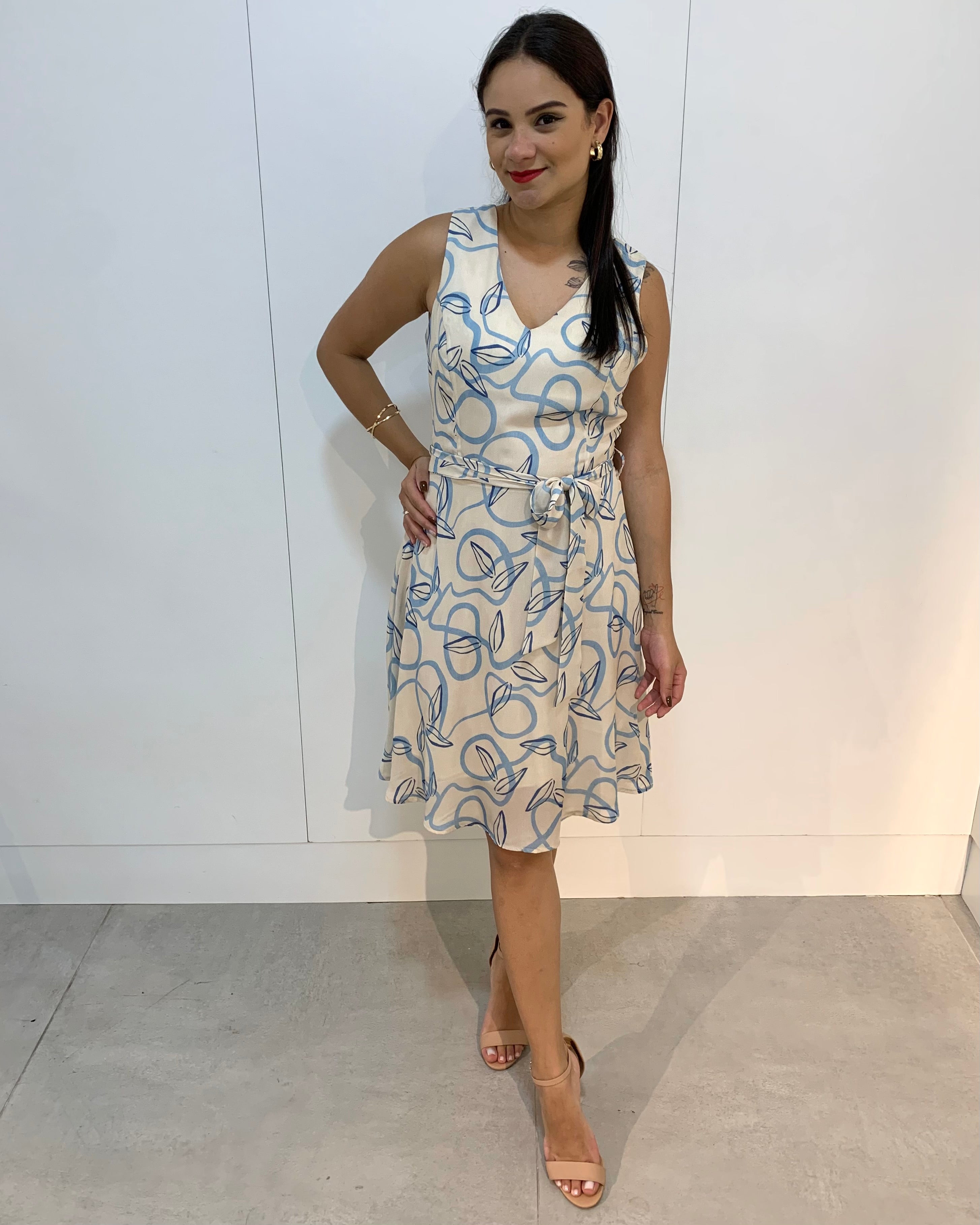 Vestido curto estampado com alças largas e decote V. Vem acompanhado um cinto para amarração do mesmo tecido, deixando o look ainda mais elegante ! Possui forro.