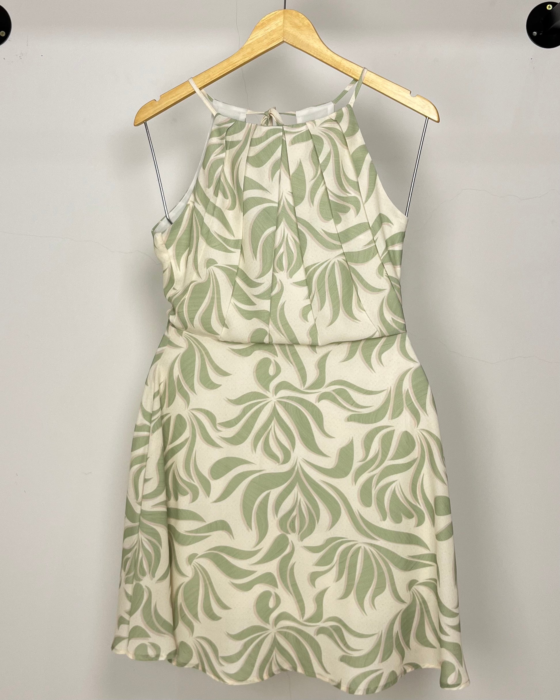 O vestido curto possui o top duplo com alças finas que delicadamente se amarram na parte de trás, criando um design encantador e ajustável. Com detalhes de pregas na frente que proporcionam um toque extra de charme. Possui forro para garantir conforto e fluidez ao movimento, com fechamento em zíper nas costas garante praticidade.