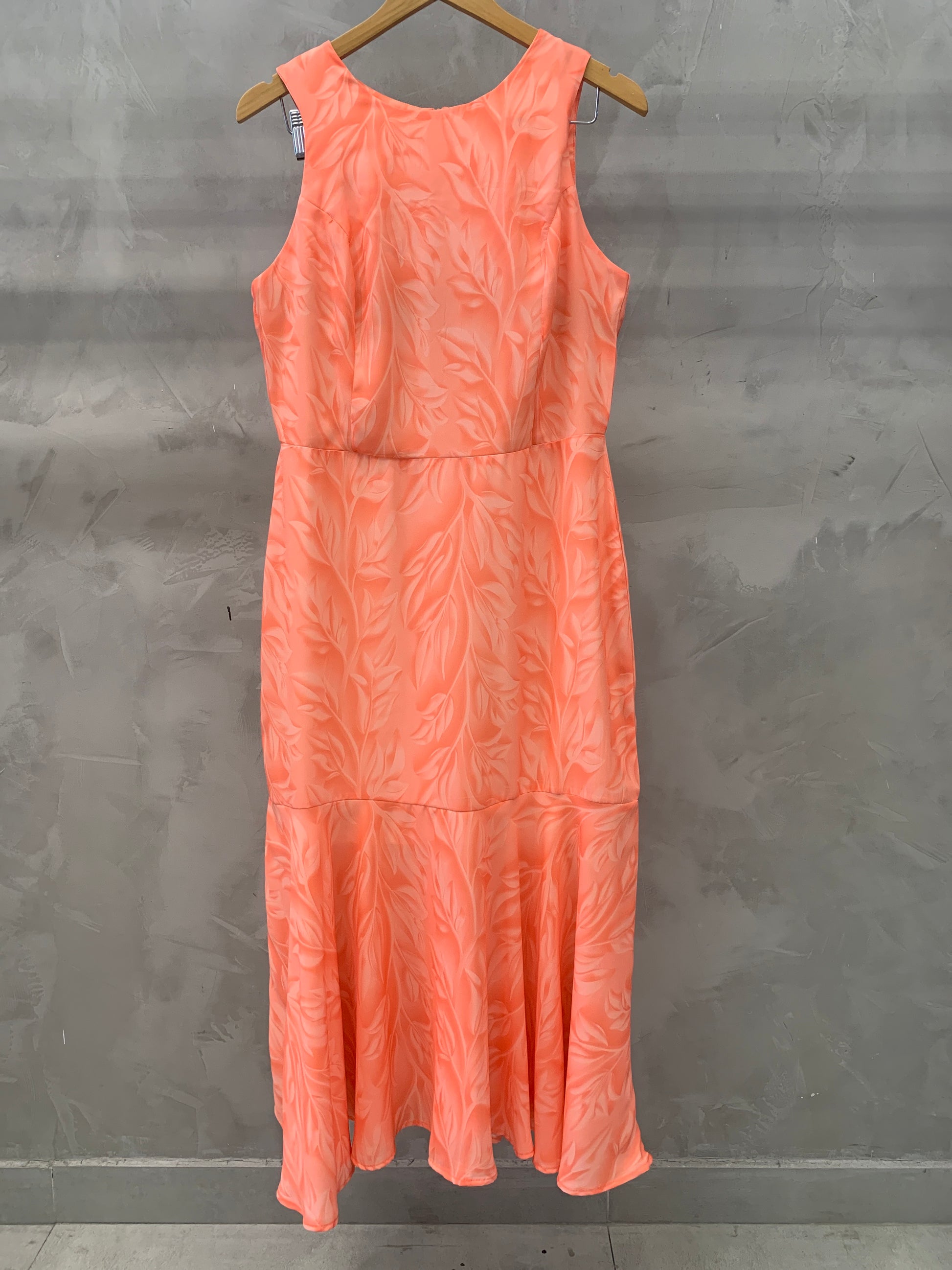 Vestido midi estampado, de alças largas e acinturado. Tem um babado na barra que dá um ar romântico a peça e zíper traseiro. Possui forro.