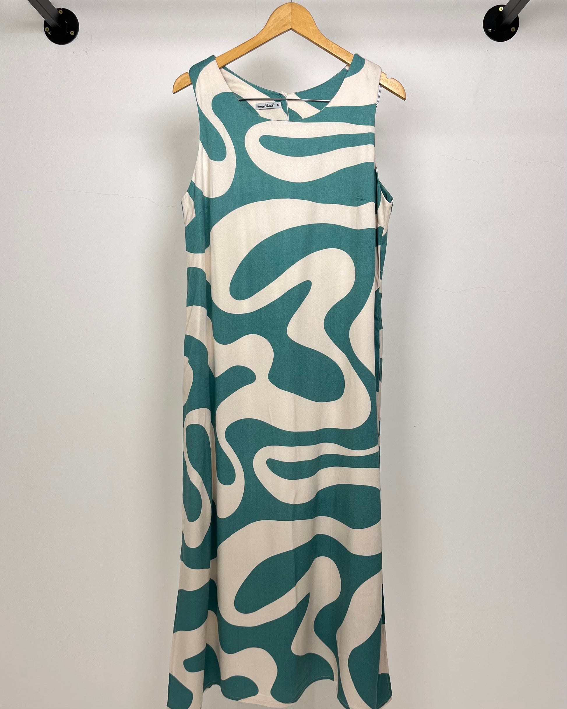 Vestido Midi Estampado com modelagem reta e solta, tem aberturas na lateral para maior conforto durante o uso. É confeccionado no tecido 100% Viscose, sendo um tecido leve e fresco.