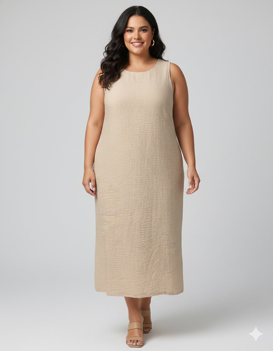 Vestido midi liso de alça larga e recortes laterais para maior conforto durante o uso. É o conforto em peça! Confeccionada no Viscose e possui forro.