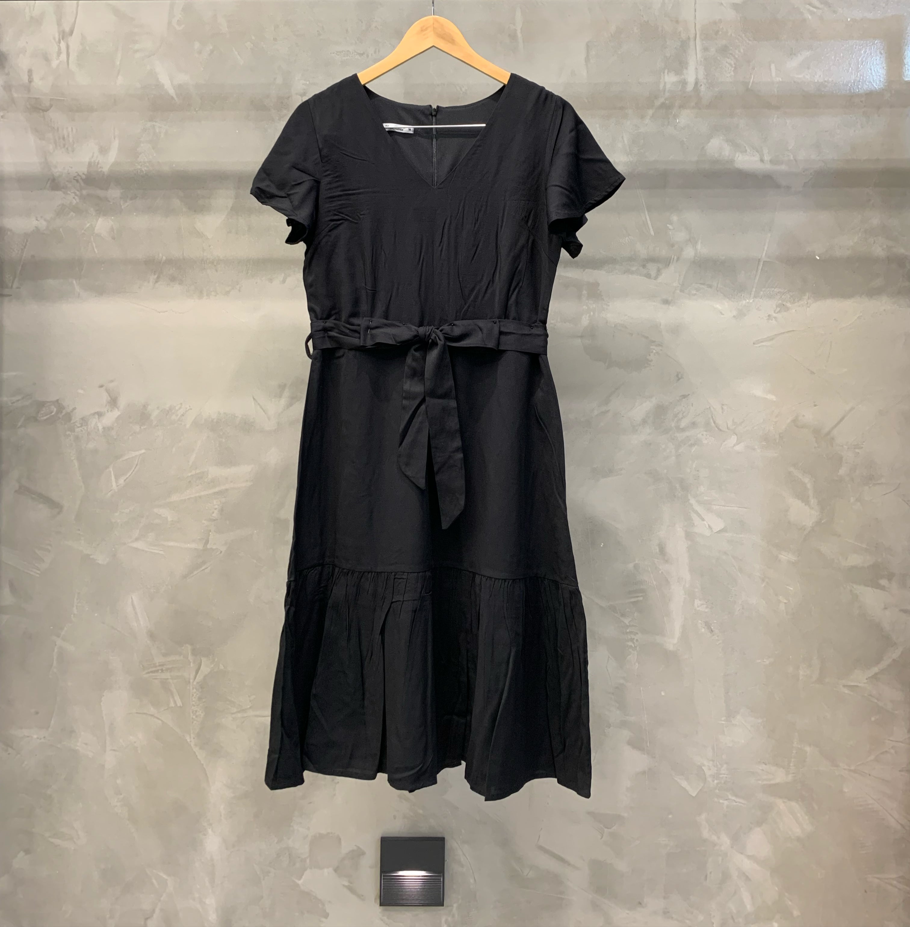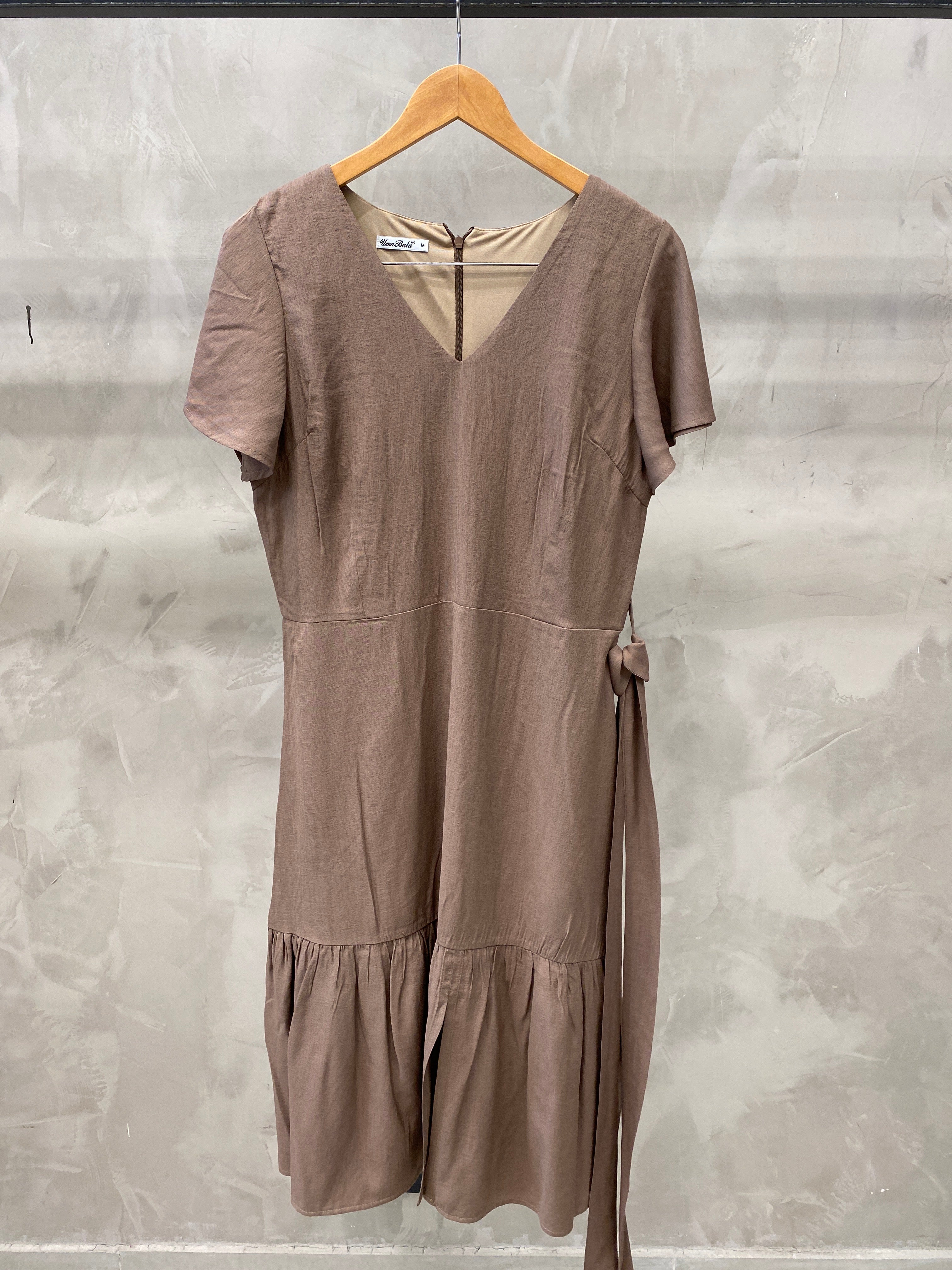 Vestido midi liso com decote v, detalhe de babados na manga e na barra. É uma peça acinturada tendo elástico na cintura e faixa para amarração no mesmo tecido. Uma peça fresca e romântica sendo perfeita por si só! Confeccioanda no Viscose, possui forro.